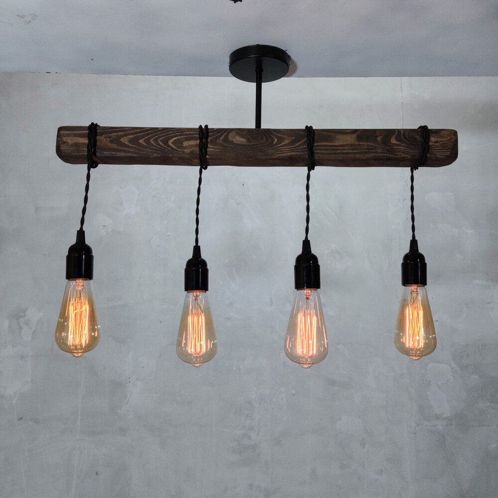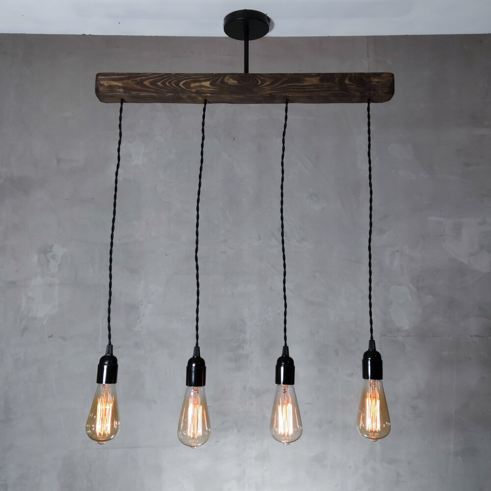 Купить Деревянная потолочная люстра loft из тонкого бруса на 4 лампы