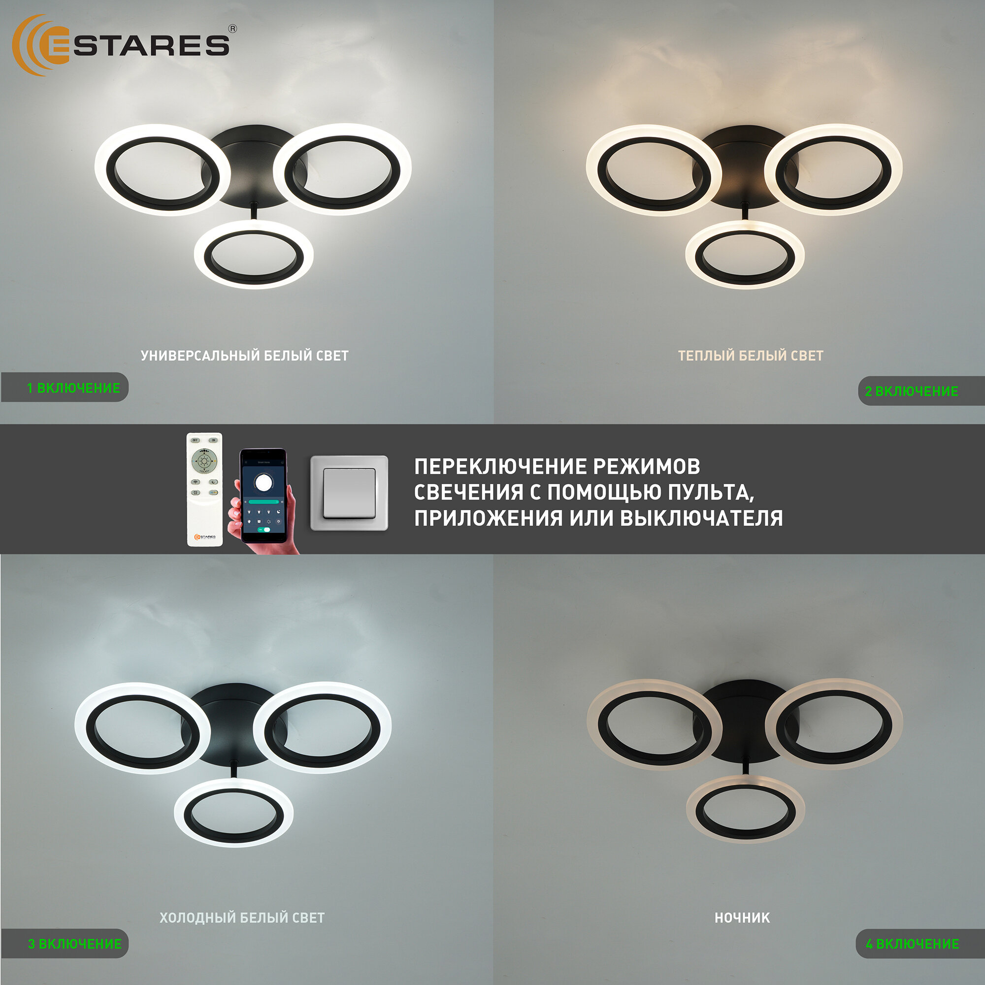 Управляемая потолочная светодиодная люстра Мария 50вт черная LITEKO интересное: