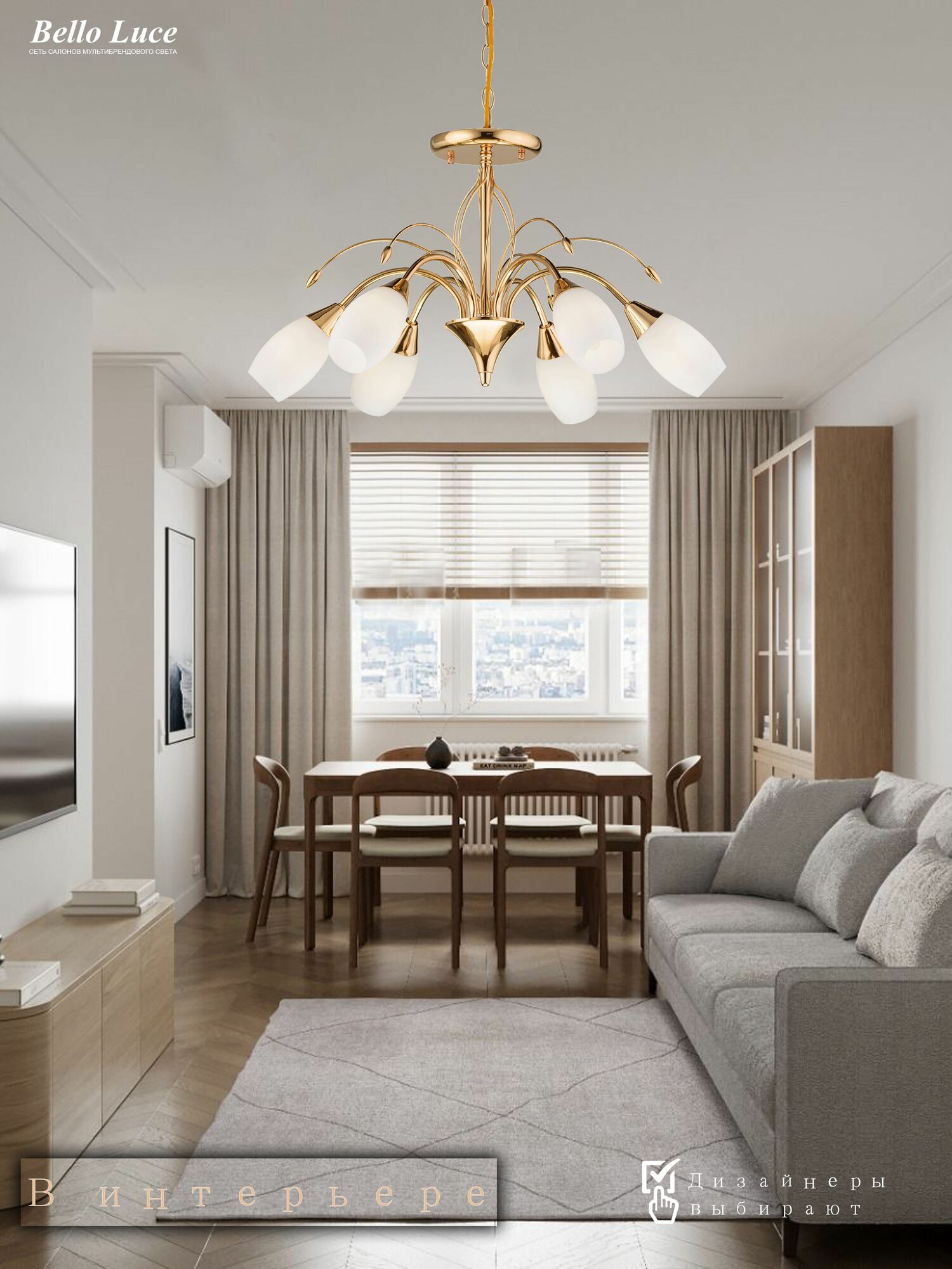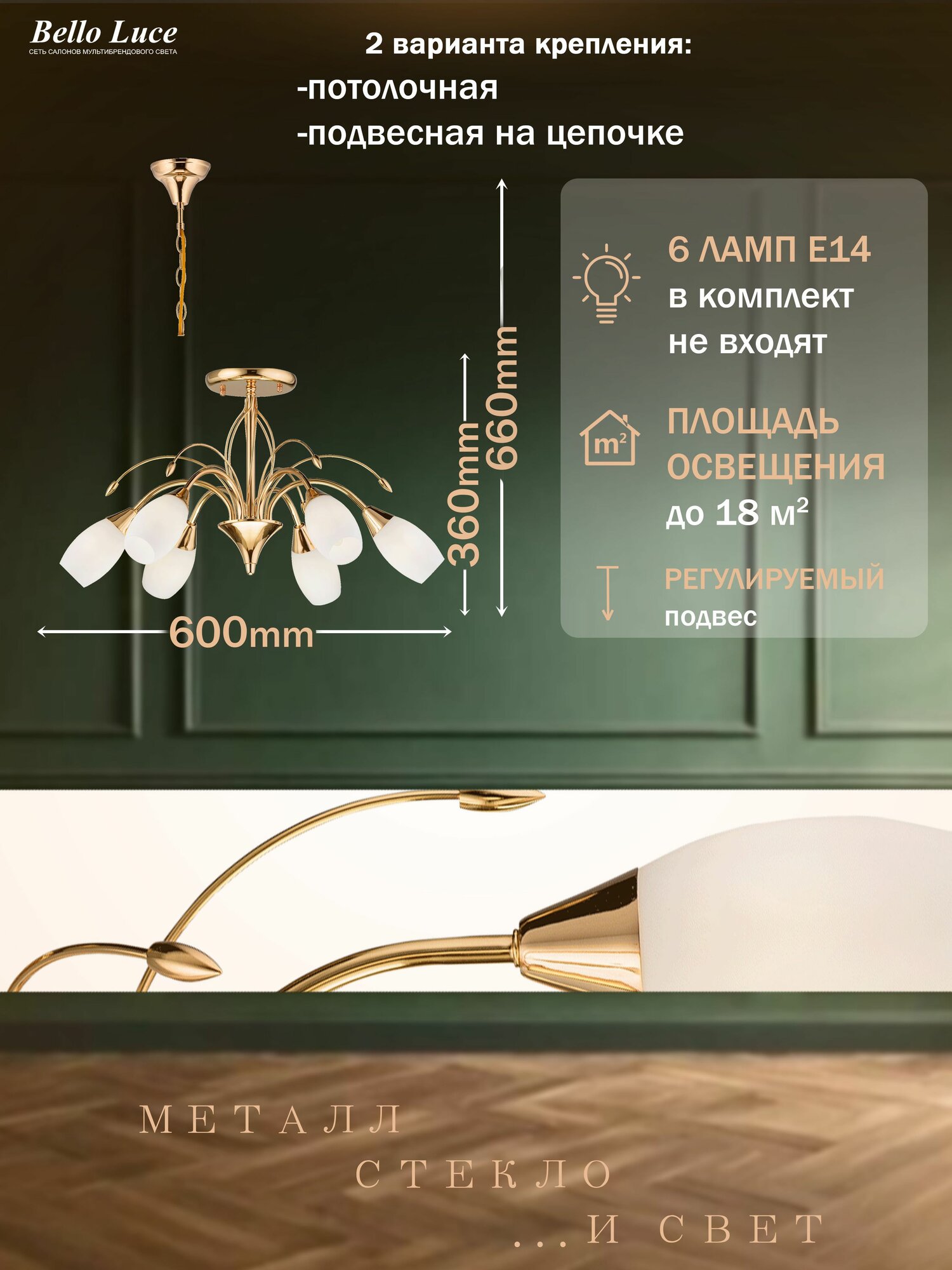 Люстра Престиж золото подвесная на 6 ламп E14, регулировка по высоте интересное: