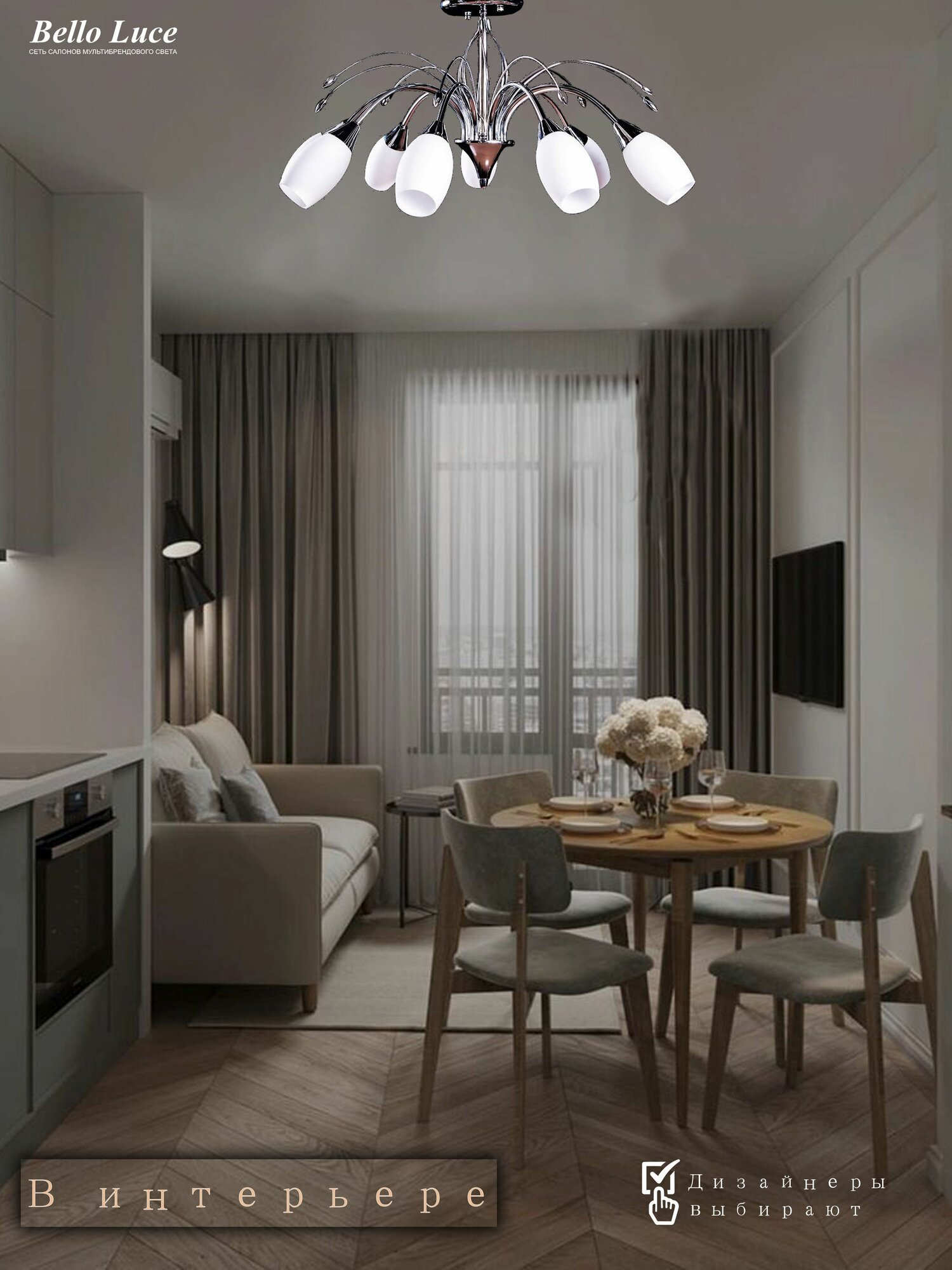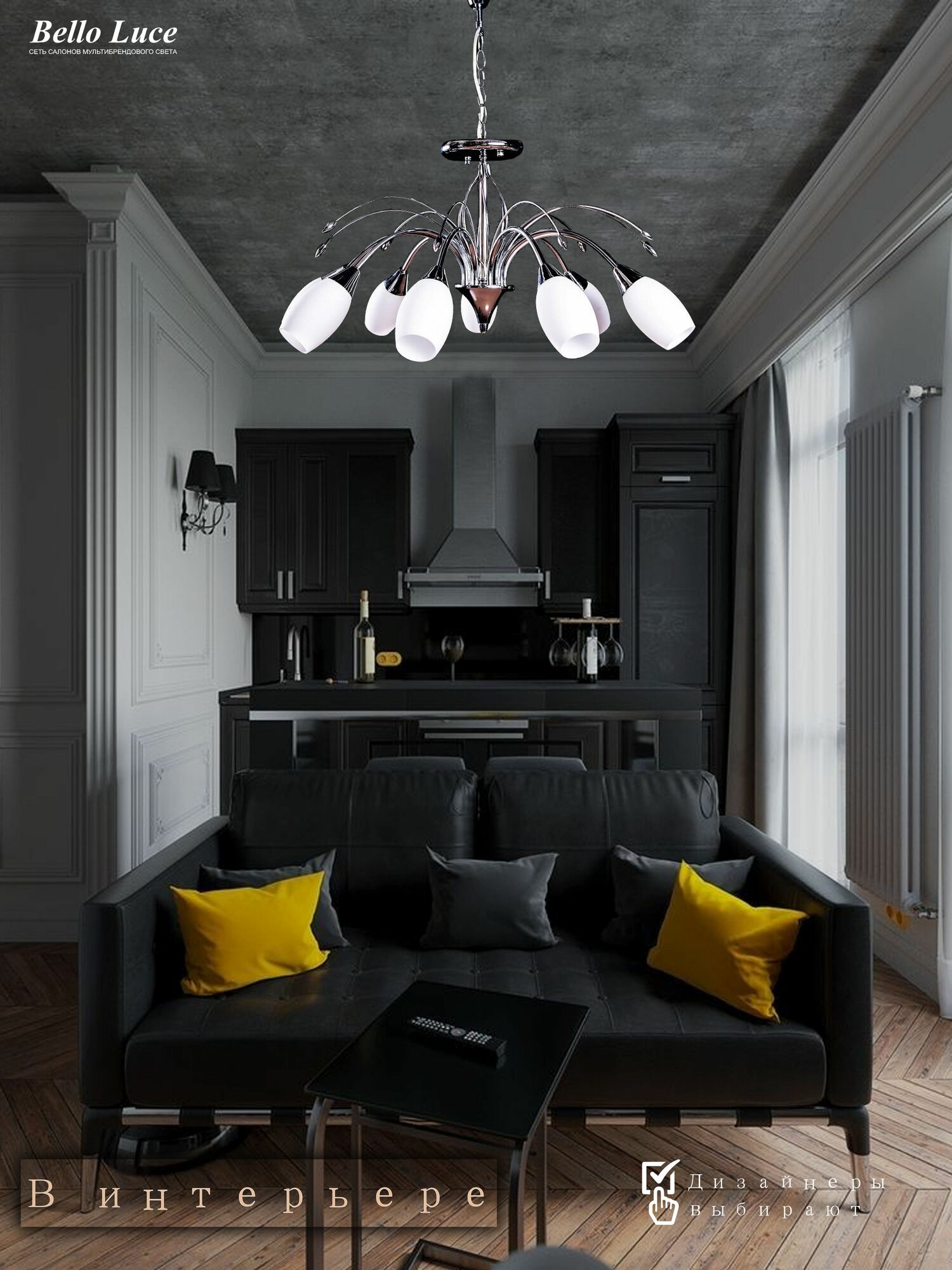 Люстра Престиж хром подвесная на 9 ламп E14, регулировка по высоте интересное:
