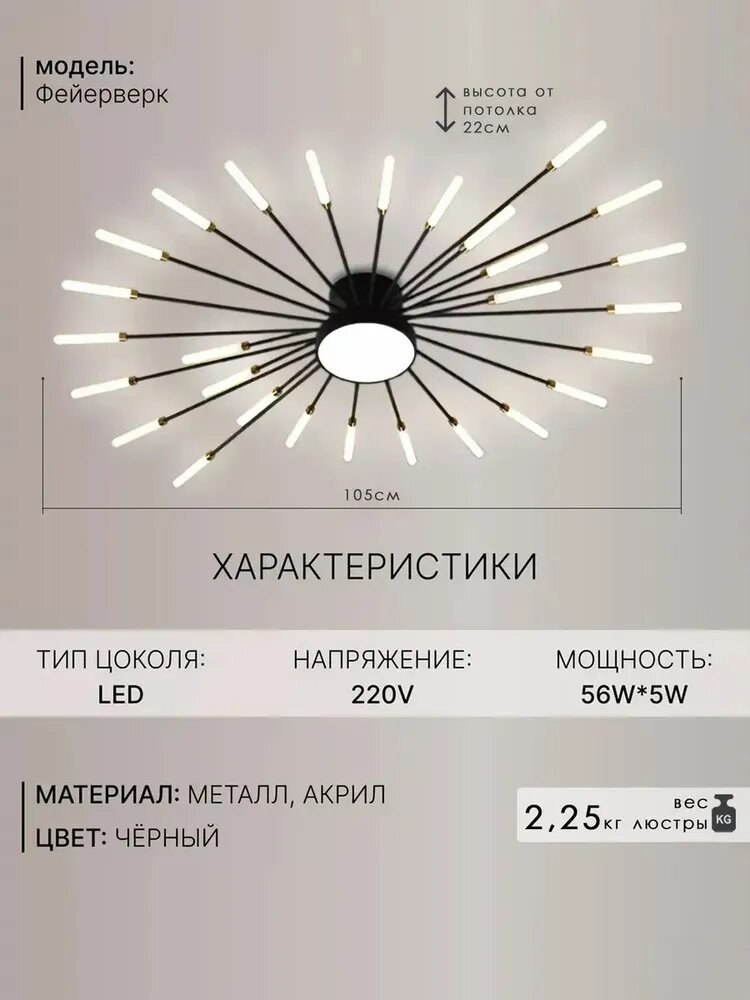 Люстра потолочная Фейерверк светодиодная 28 светодиодов, черная, мощность 32Вт интересное: