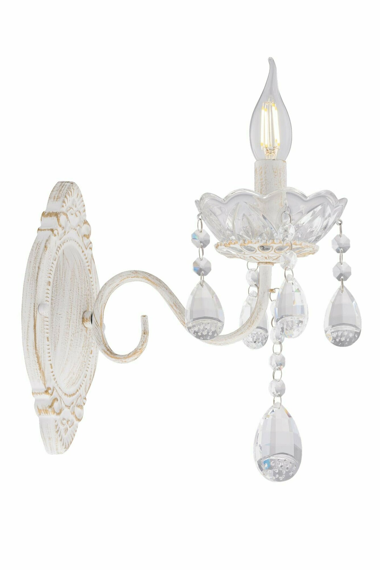 Светильник настенный, бра Классика белая с прозрачными хрустальными подвесками на 1 лампу E14
