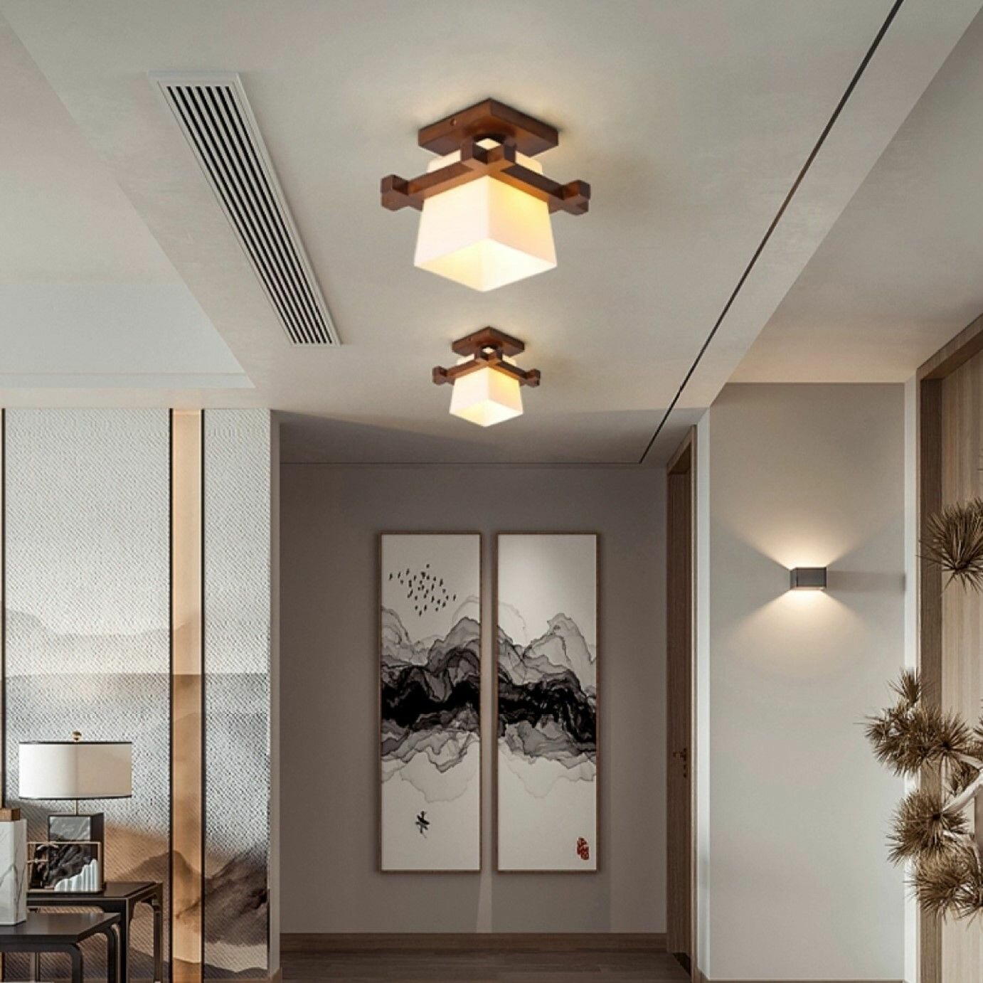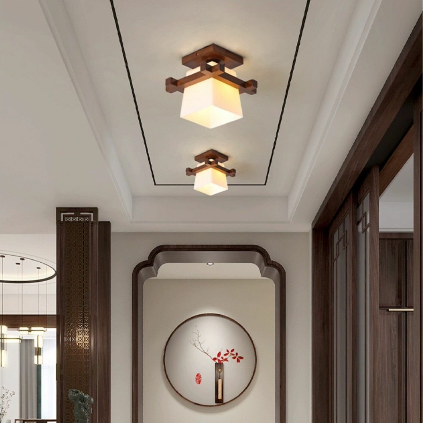 Люстра потолочная светодиодная подвесная, светильник в спальню, зал, детскую, кухню. Дерево, Е27