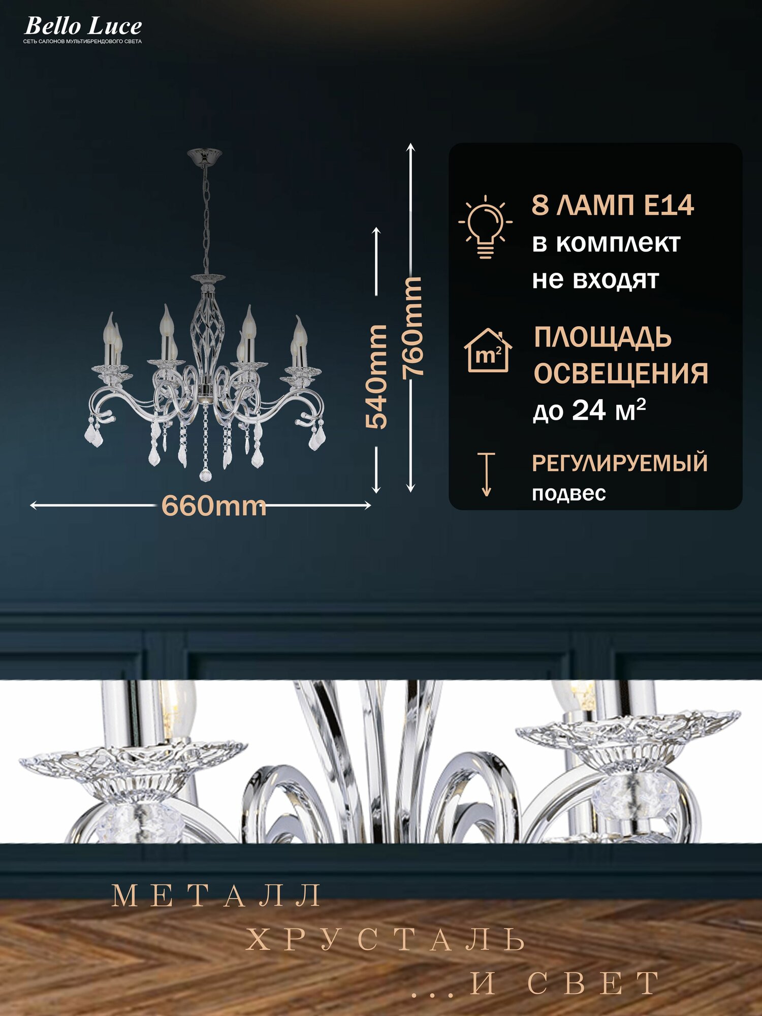 Ниже Вы можете прочитать отзывы на Люстра Классика подвесная хром с прозрачными хрустальными подвесками на 8 ламп E14, регулировка по высоте, ознакомится с подробными характеристиками, посмотреть интересные обзоры и фотографии на Люстра Классика подвесная хром с прозрачными хрустальными подвесками на 8 ламп E14, регулировка по высоте.