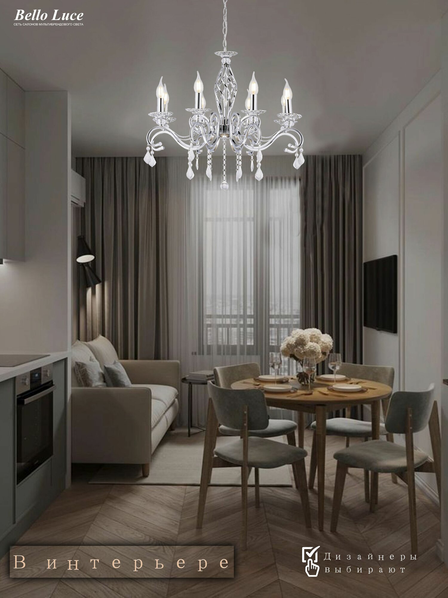 СохранитьЛюстра Классика подвесная хром с прозрачными хрустальными подвесками на 8 ламп E14, регулировка по высоте интересное: