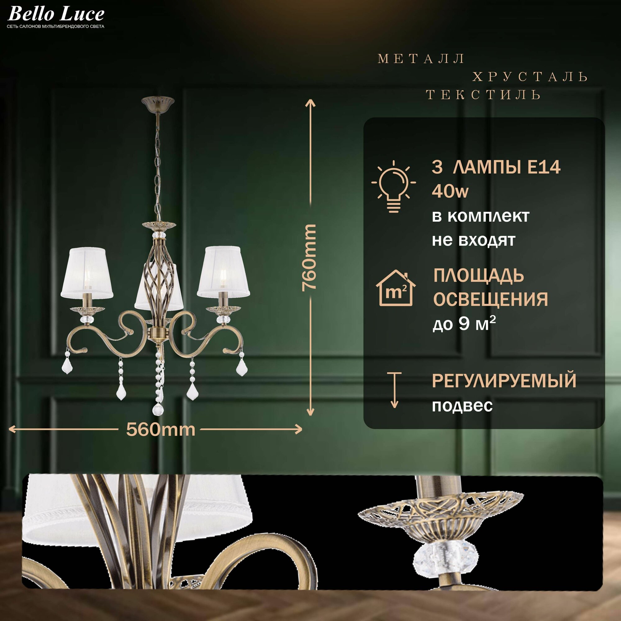 СохранитьЛюстра Классика подвесная античная бронза с прозрачными хрустальными подвесками на 3 лампы E14, белый текстильный абажур, регулировка по высоте интересное: