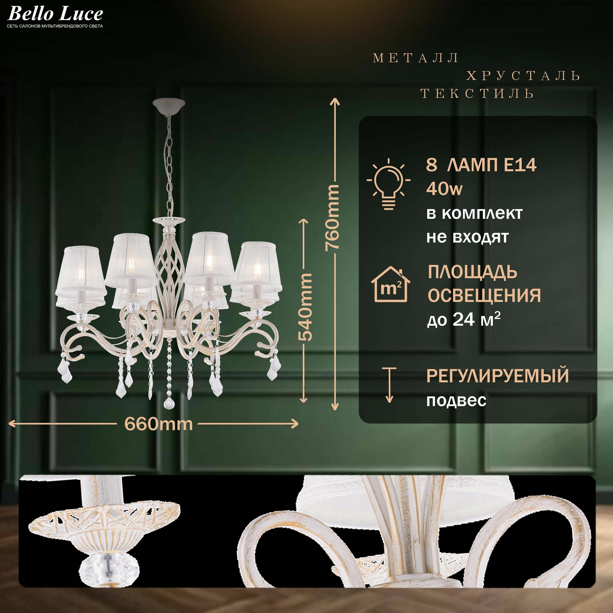 Ниже Вы можете прочитать отзывы на Люстра Классика подвесная белая/золото с прозрачными хрустальными подвесками на 8 ламп E14, белый текстильный абажур, регулировка по высоте, ознакомится с подробными характеристиками, посмотреть интересные обзоры и фотографии на Люстра Классика подвесная белая/золото с прозрачными хрустальными подвесками на 8 ламп E14, белый текстильный абажур, регулировка по высоте.