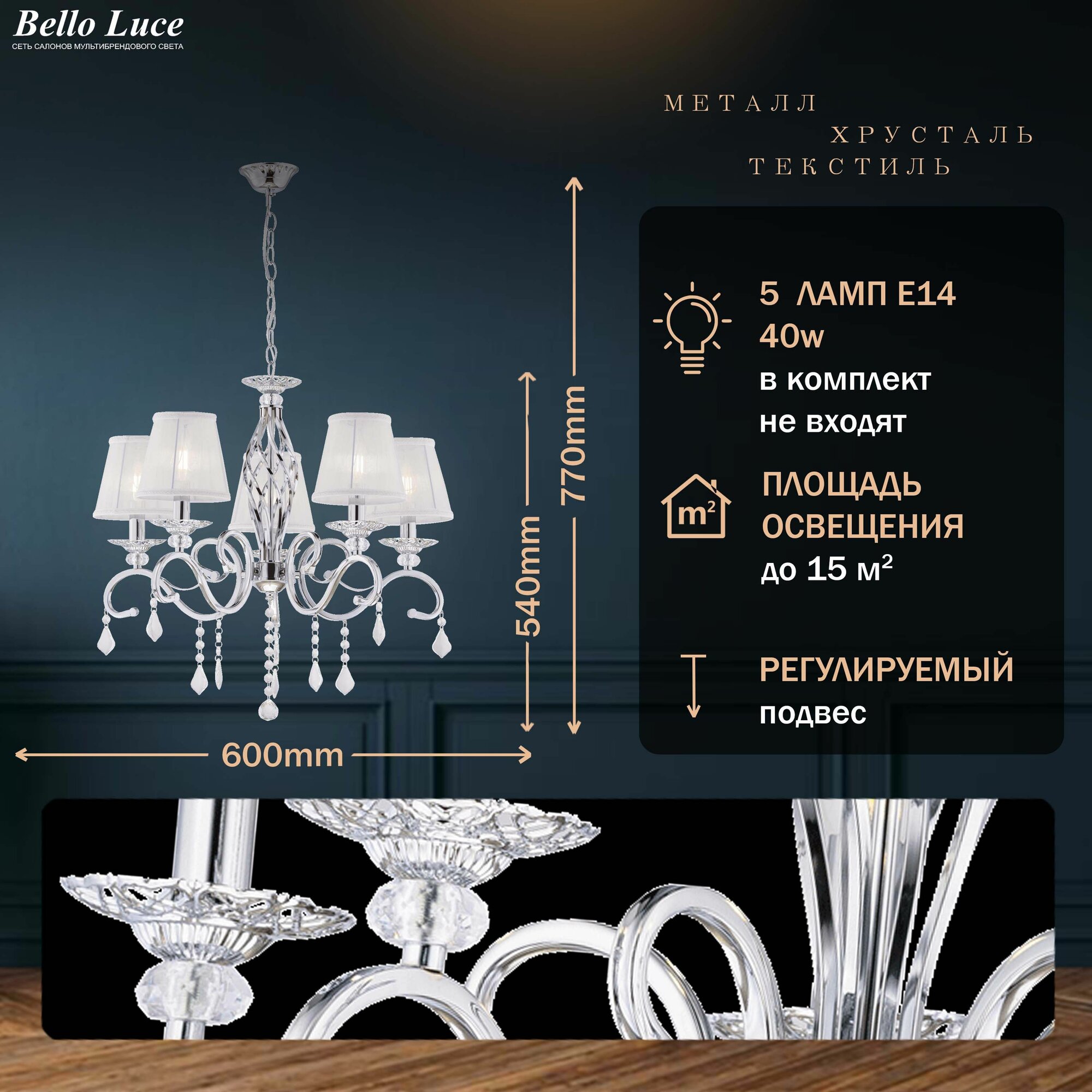 Ниже Вы можете прочитать отзывы на Люстра Классика подвесная хром с прозрачными хрустальными подвесками на 5 ламп E14, белый текстильный абажур, регулировка по высоте, ознакомится с подробными характеристиками, посмотреть интересные обзоры и фотографии на Люстра Классика подвесная хром с прозрачными хрустальными подвесками на 5 ламп E14, белый текстильный абажур, регулировка по высоте.