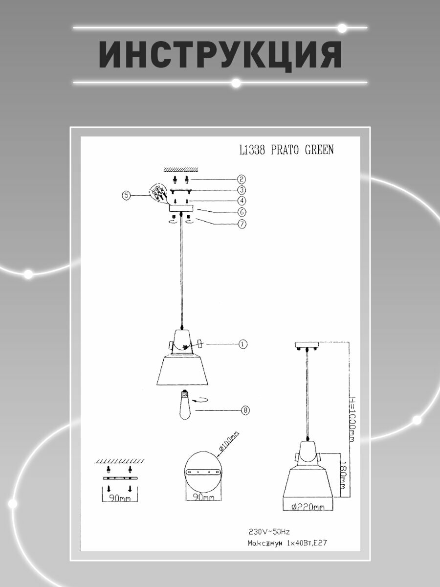 Светильник подвесной Lamplandia L1338 PRATO GREEN, Е27*1 макс 40Вт интересное: