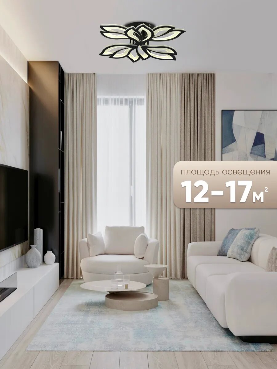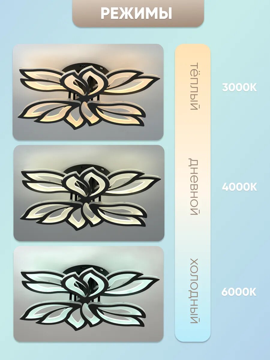 Люстра c пультом светодиодная потолочная, лепестки 3 режима освещения чёрная интересное: