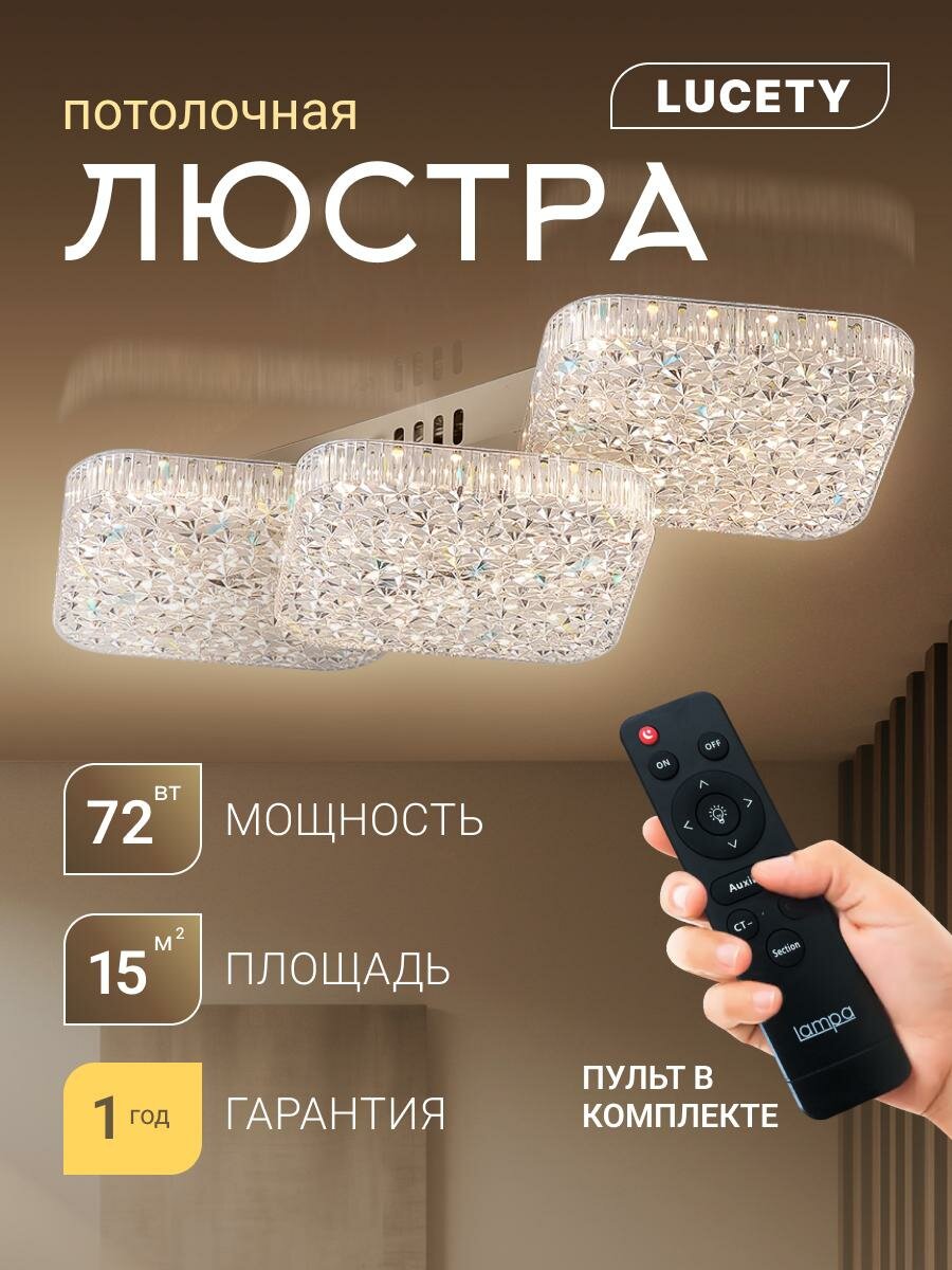 Люстра на потолок светодиодная светильник с пультом (24403-3), LUCETY, площадь освещения 15 кв. м. интересное: