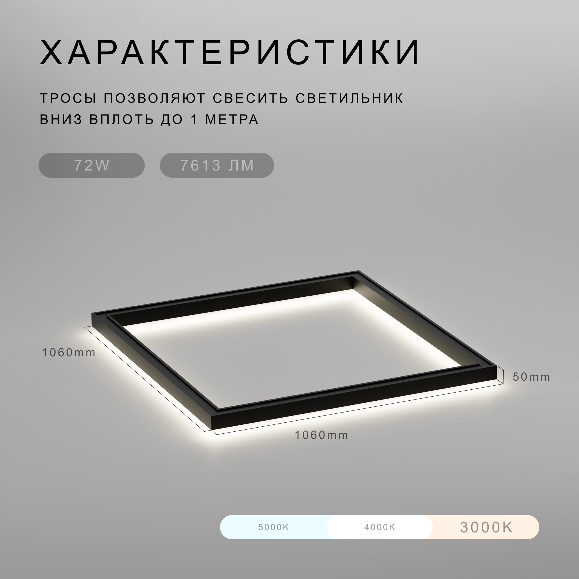 Потолочный светильник "Светолиния" 72Вт, 2700K, 106х106х5см, черный интересное: