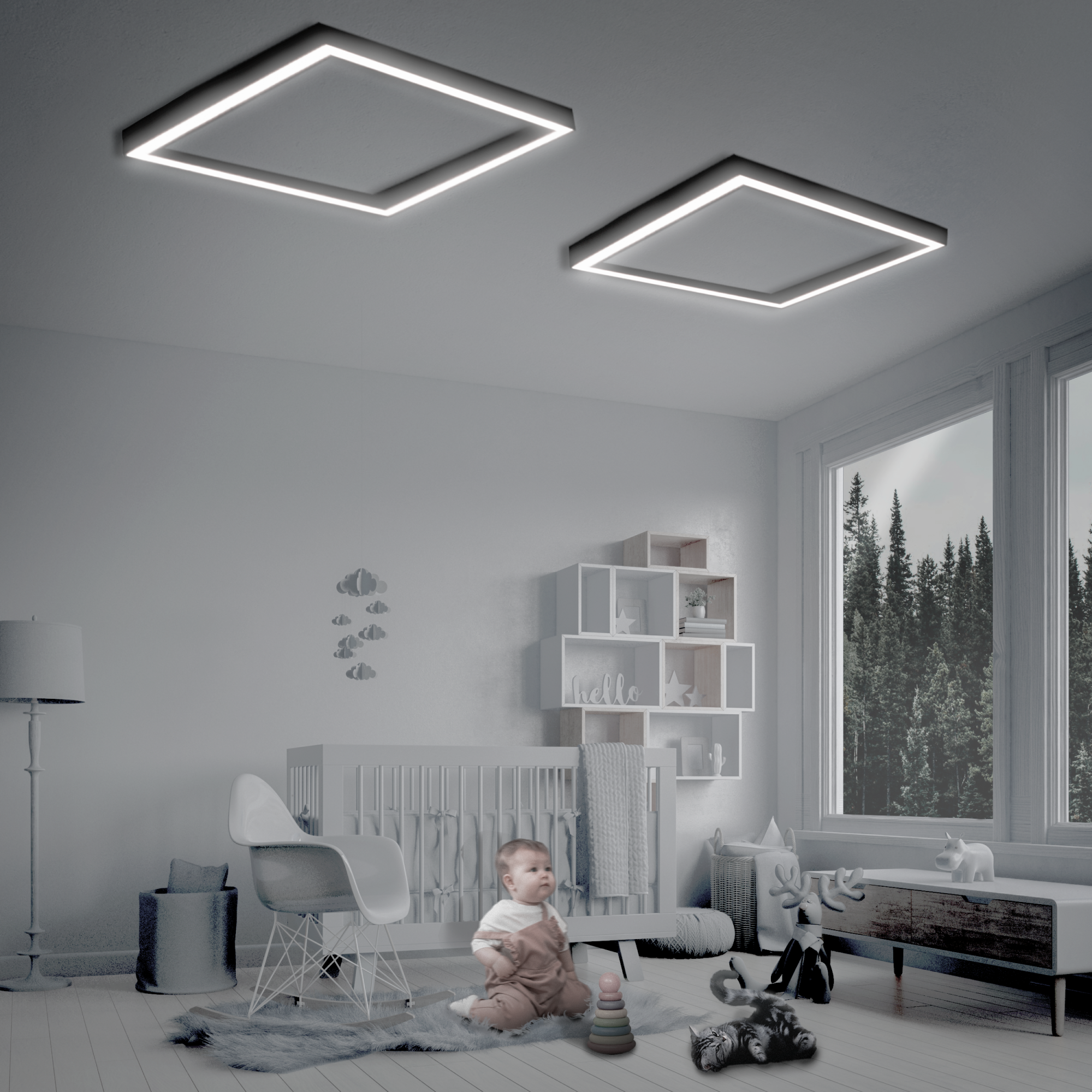 Купить Потолочный светильник "Светолиния" 72Вт, 2700K, 106х106х5см, черный