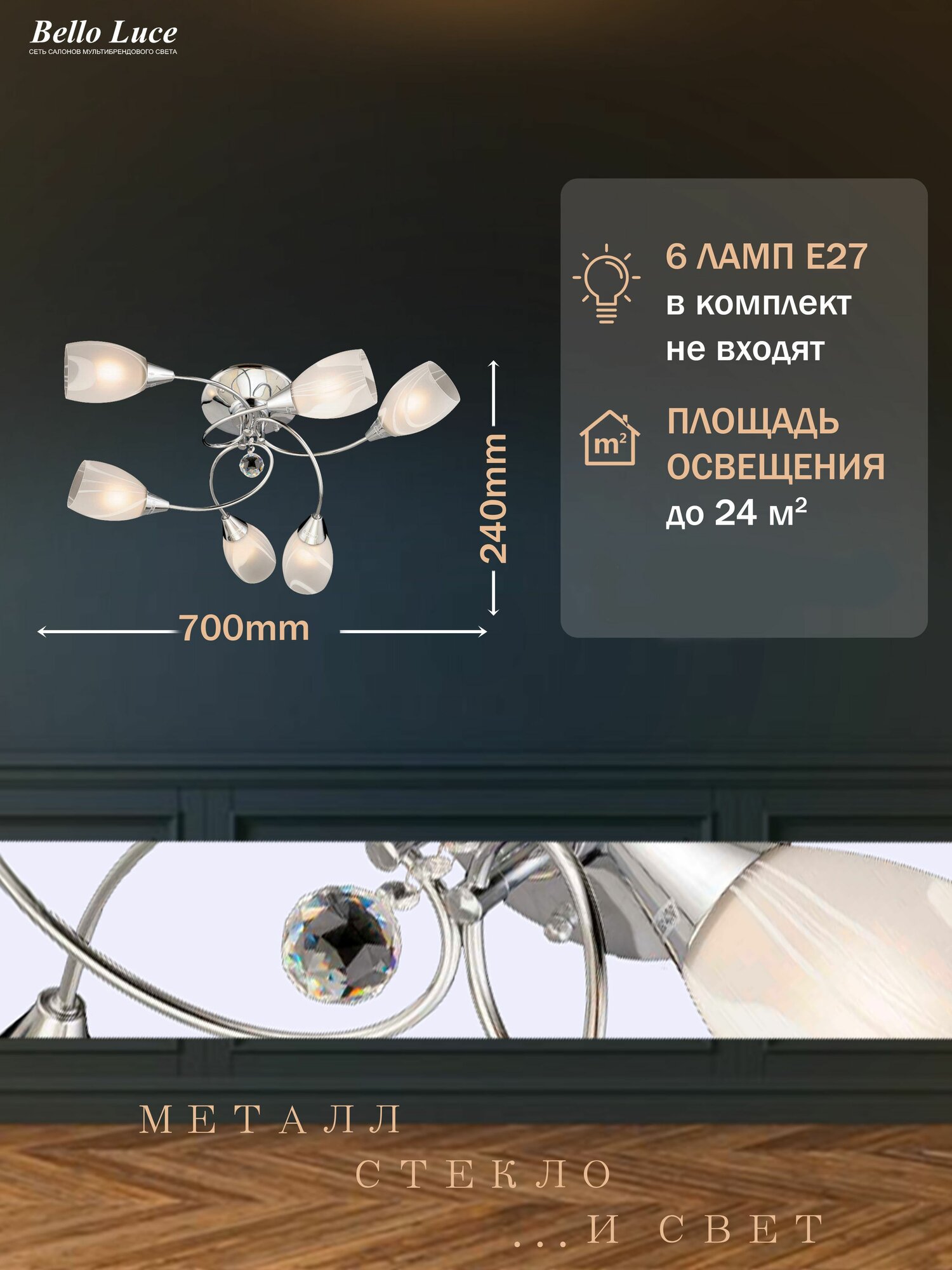 СохранитьЛюстра Престиж хром потолочная с матовыми плафонами на 6 ламп E27 интересное: