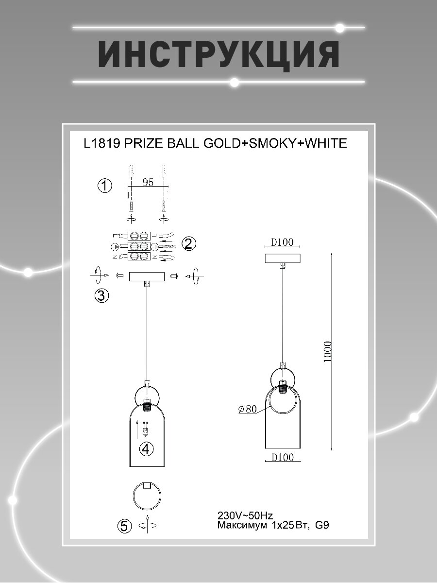 Светильник подвесной Lamplandia L1819 PRIZE BALL GOLD + SMOKY + WHITE, G9*1 макс 25Вт интересное: