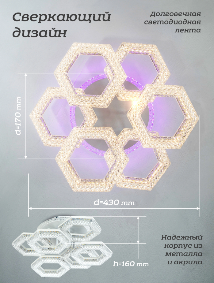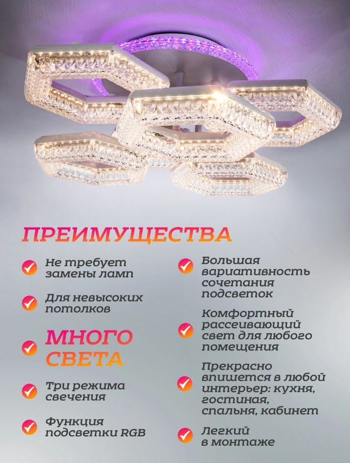 Люстра потолочная L3725-6, светодиодная, с пультом дистанционного управления интересное:
