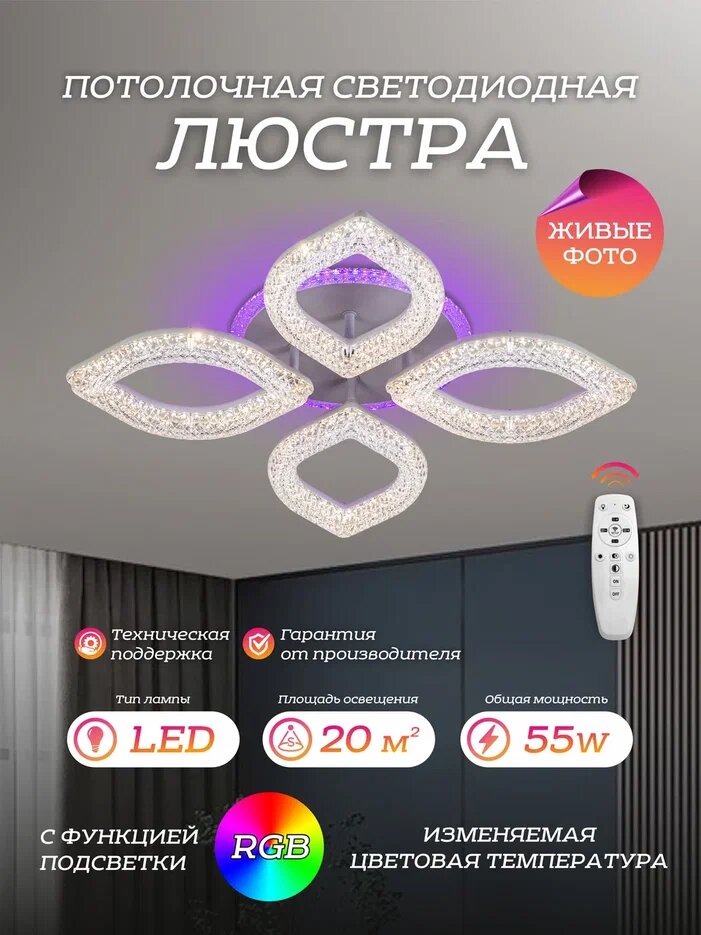 Люстра LED4U L3568-4, LED, дистанционное управление, пульт, IP20, 55 Вт интересное: