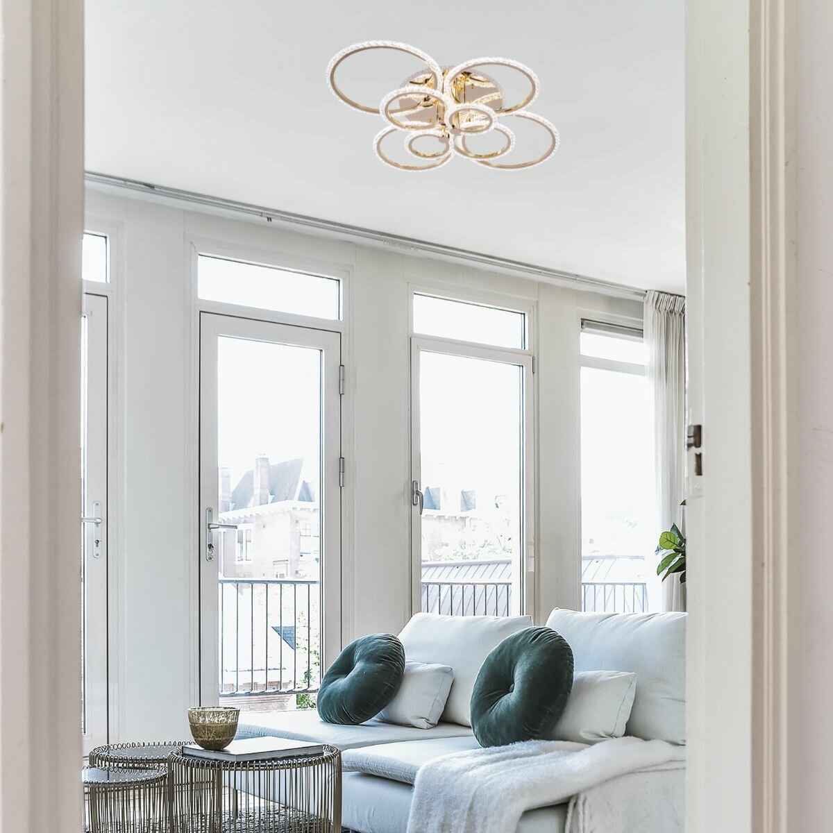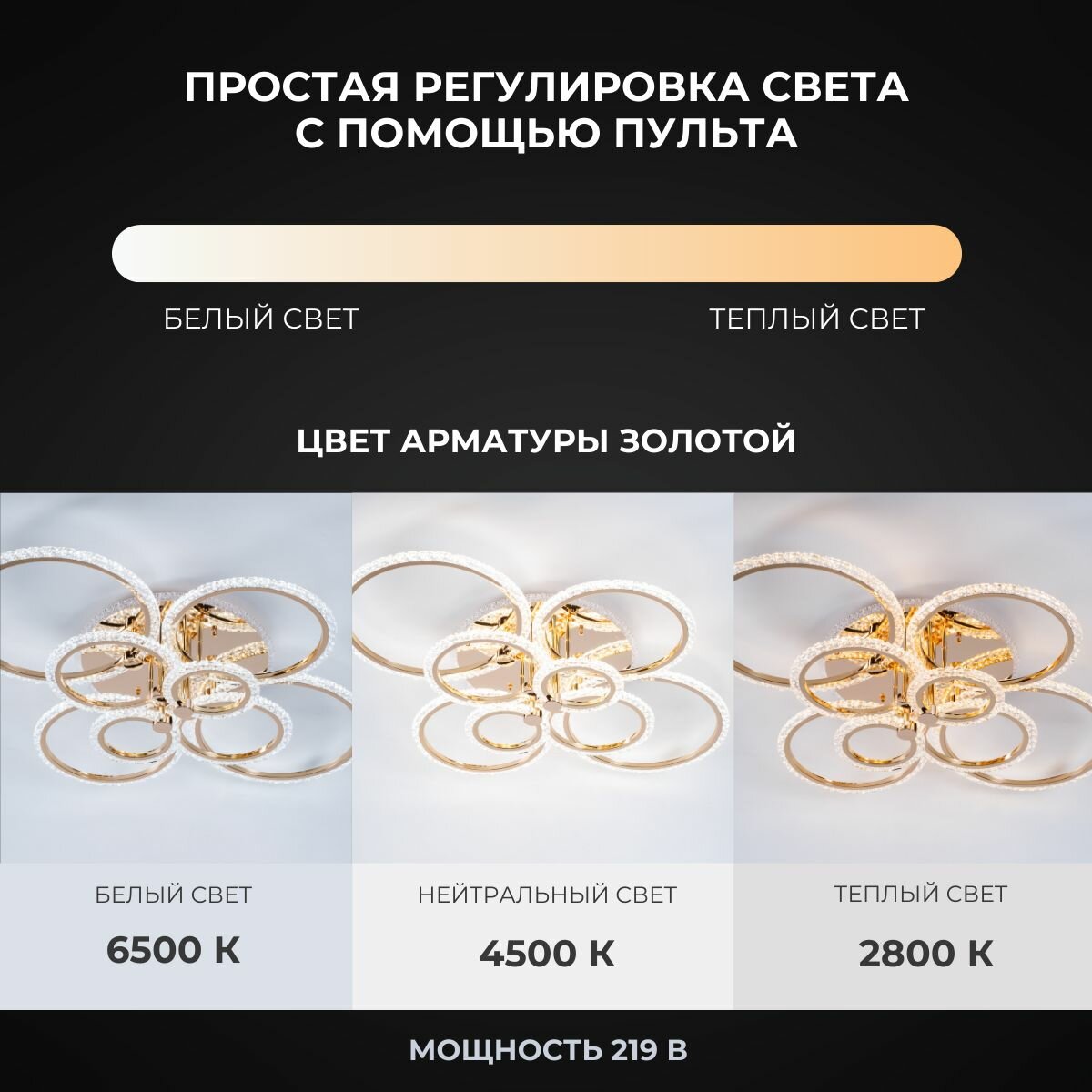 Люстра с пультом светодиодная потолочная 176W, 8 ламп, цветок, большая, белая, LEDCITY