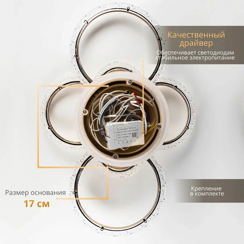 Люстра с пультом светодиодная потолочная 176W, 8 ламп, цветок, большая, белая, LEDCITY