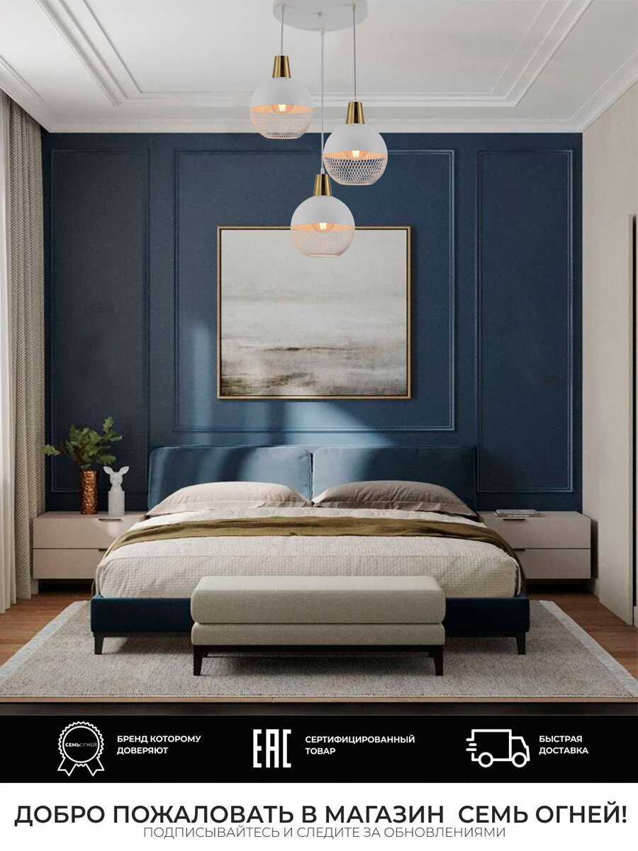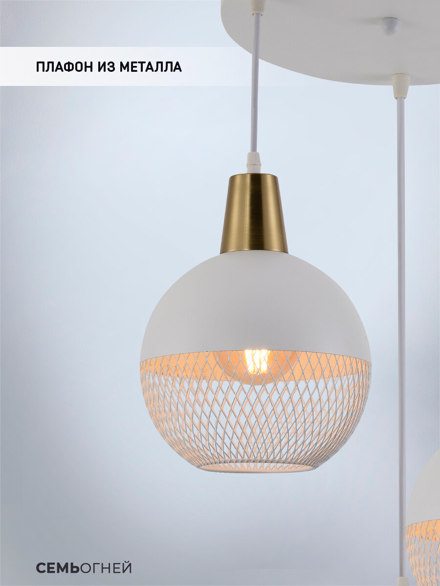 Люстра потолочная подвесная Семь Огней, белая с бронзой на 3 лампочки интересное: