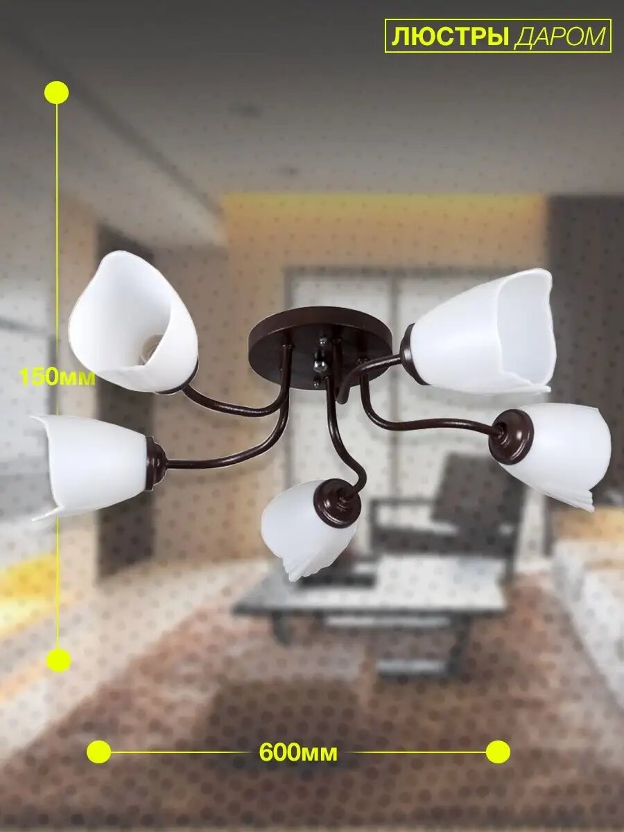 СохранитьЛюстра потолочная Люстры Даром в гостиную, коричневый/белый, на 5 плафонов интересное: