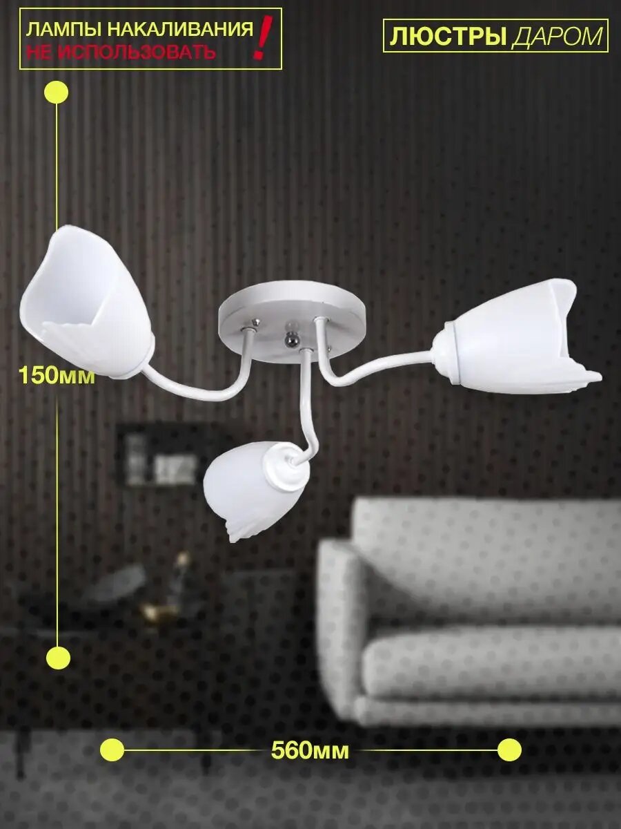 СохранитьЛюстра полоточная Люстры Даром в гостиную белый цвет на 3 плафона интересное: