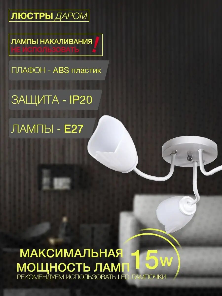 Люстра потолочная Люстры Даром в гостиную белый цвет на 3 плафона