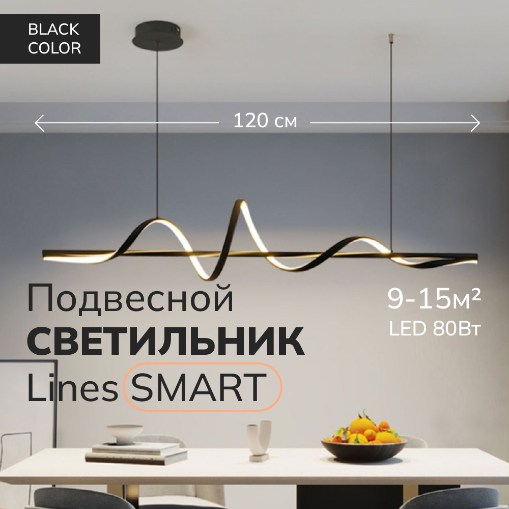 Подвесной светильник Lines SMART черный 120 см пружинка с регулировка цветовой температуры и затенения интересное: