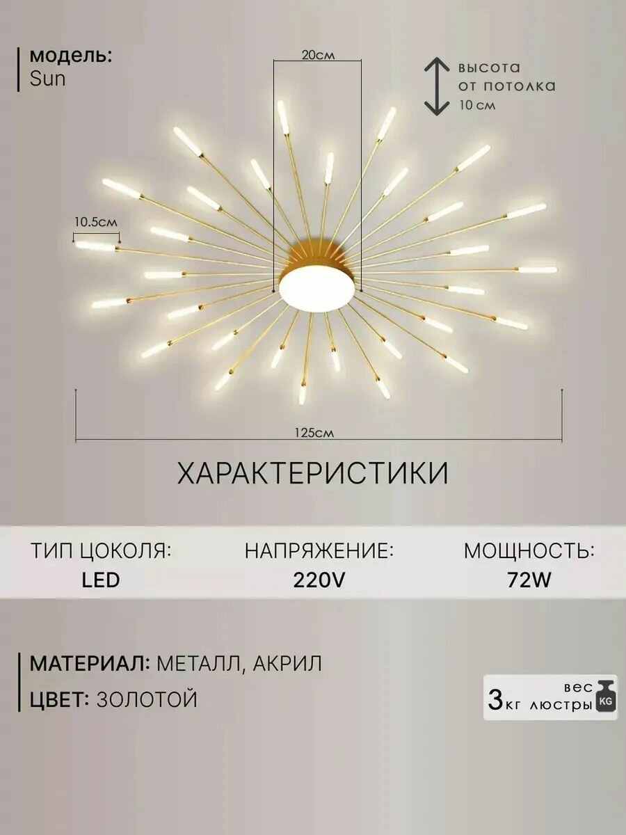 СохранитьЛюстра потолочная House hallow "Sun", LED, потолочная, 30 ламп, 72 Вт, цвет золота, белый плафон интересное: