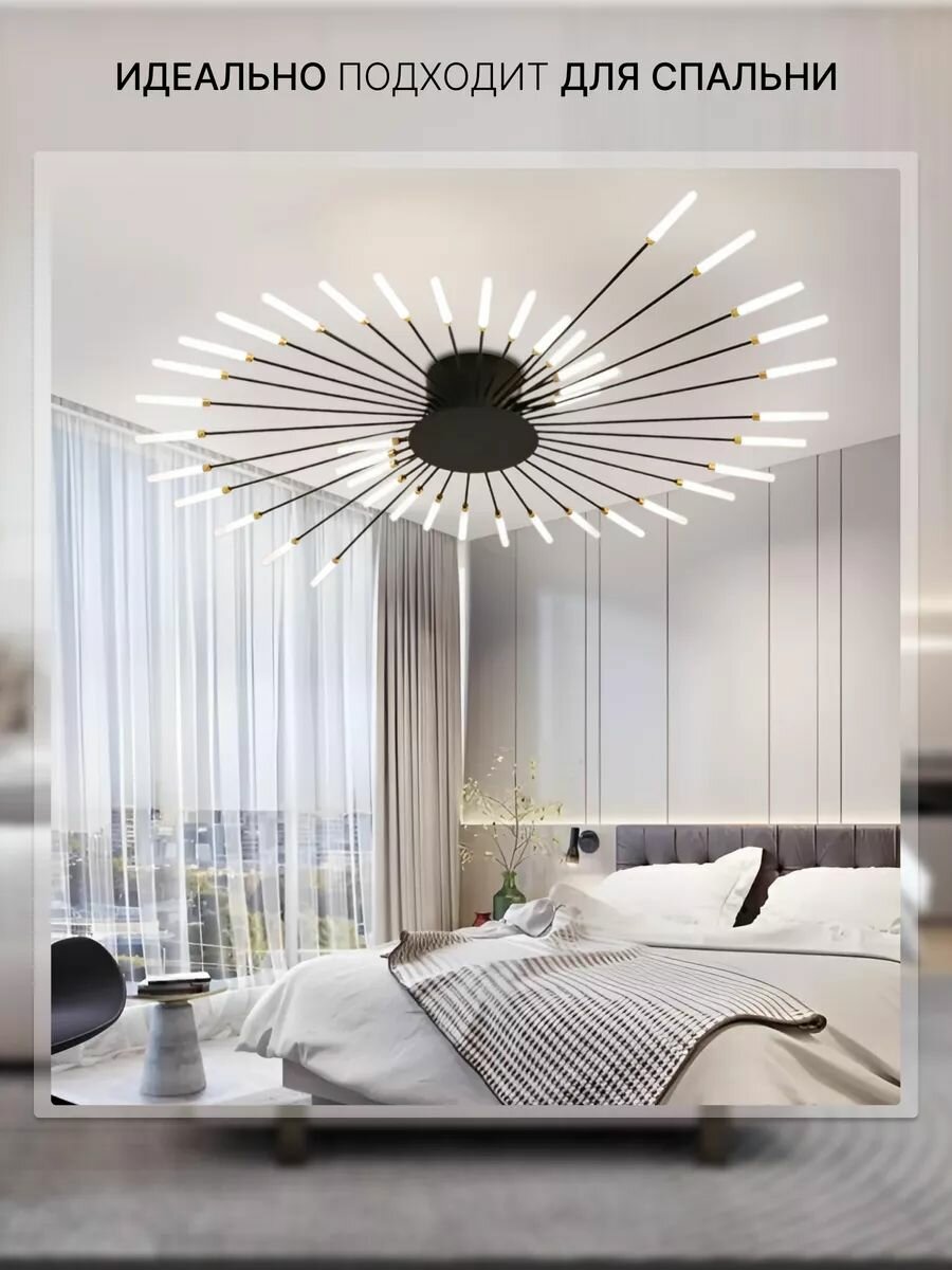 Люстра потолочная House hallow "Sun", LED, 72 Вт, 30 ламп, белый плафон, чёрное крепление