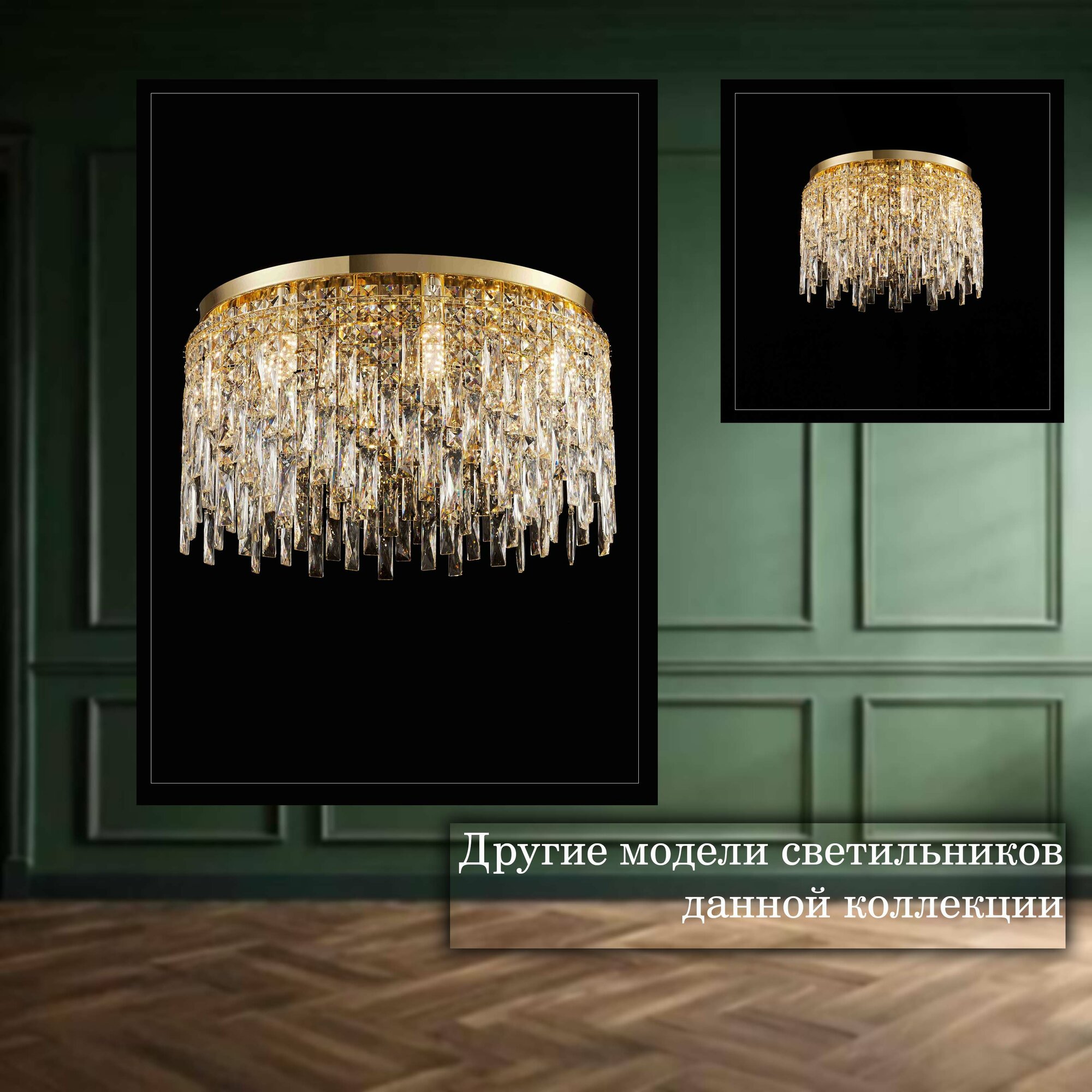 Люстра Cristallo хрустальная круглая золото потолочная с прозрачными хрустальными подвесками на 8 ламп E14