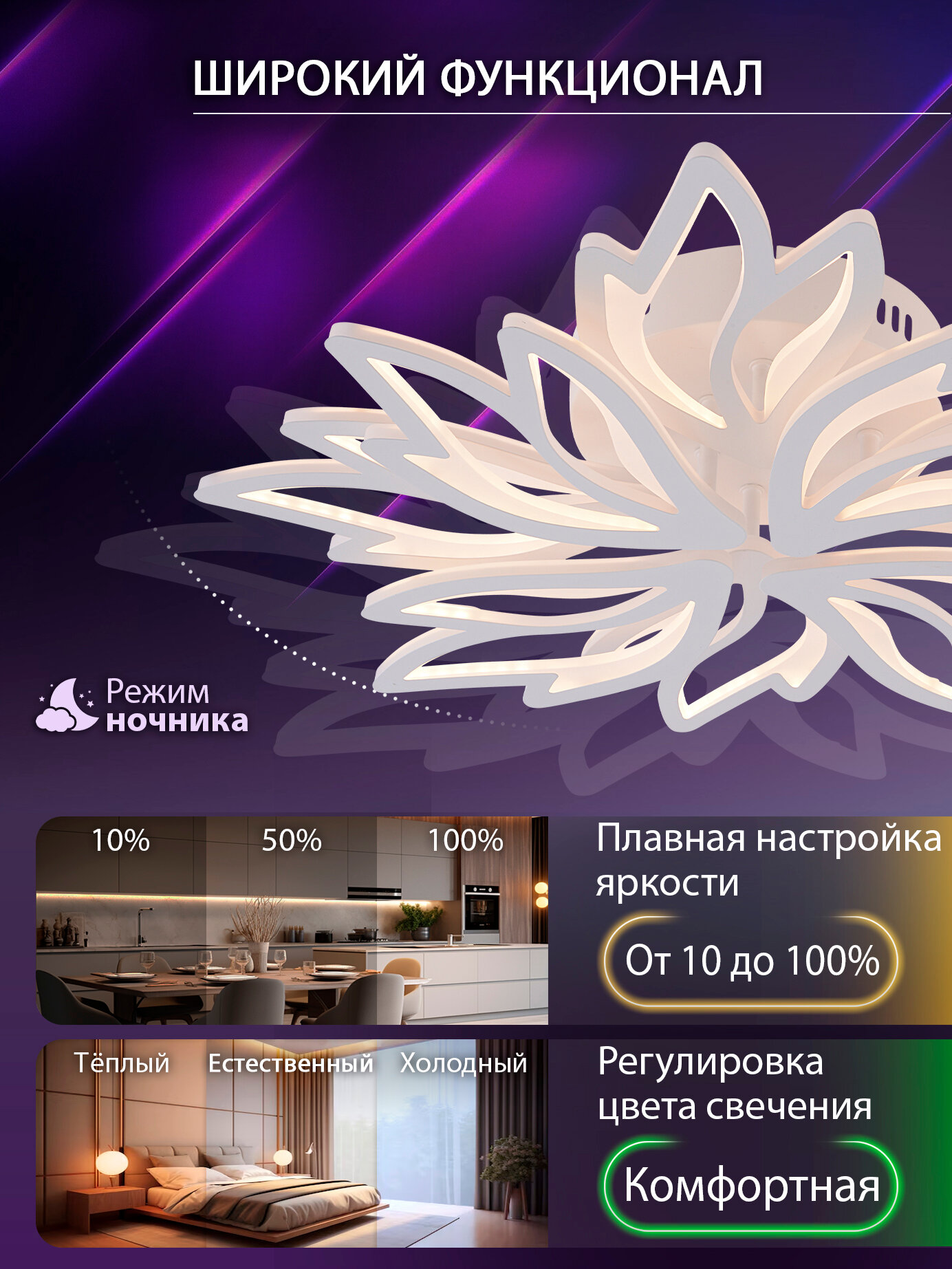 Люстра с пультом светодиодная потолочная 176W, 8 ламп, цветок, большая, белая, LEDCITY