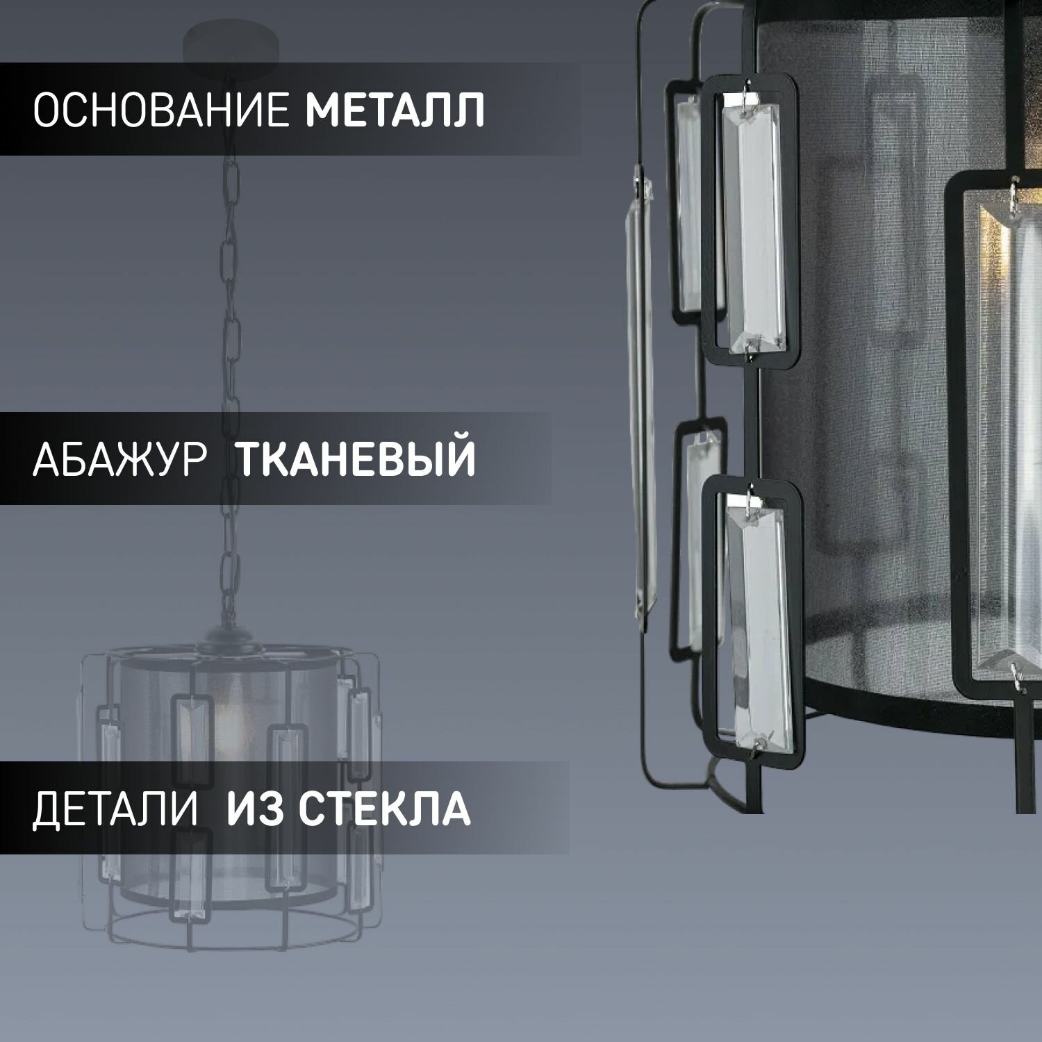 Светильник потолочный, светильник подвесной, Люстра ЭлисСвет 70094LA/3P BK+BK