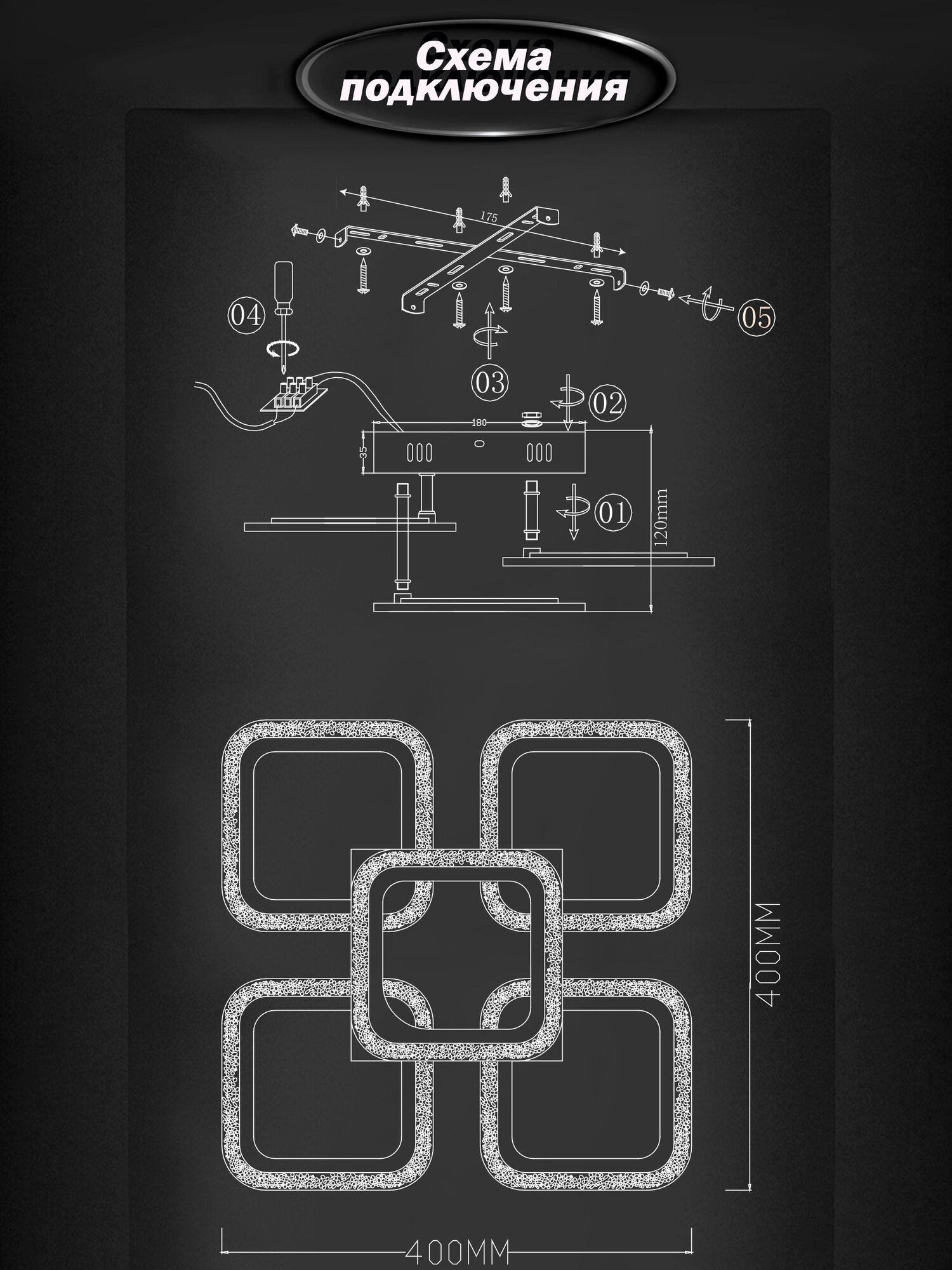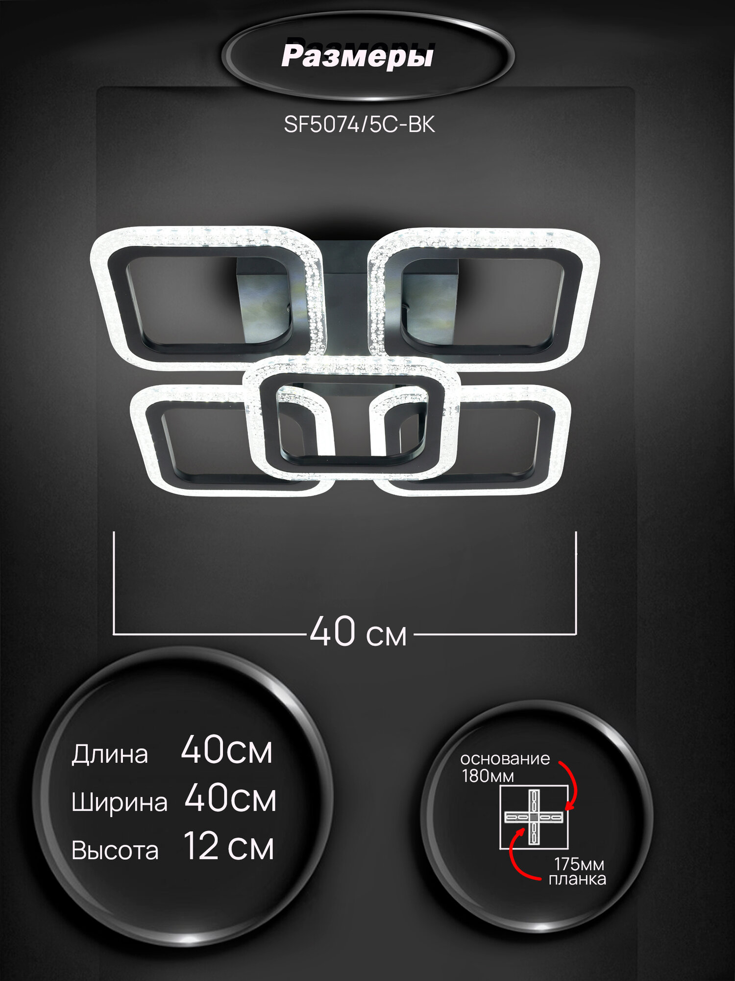 Люстра потолочная светодиодная Семь Огней, черная с пультом, до 12 кв. м.