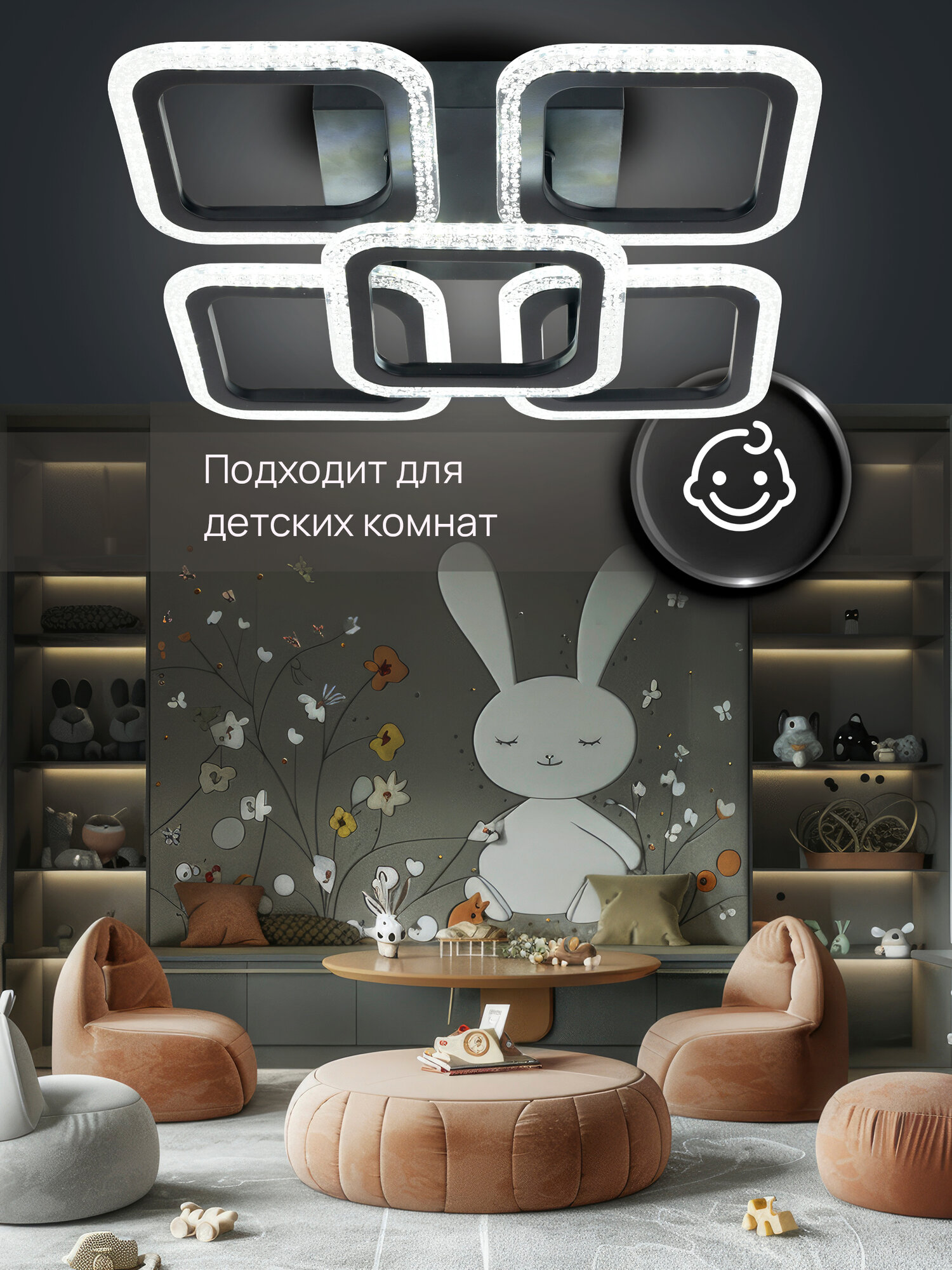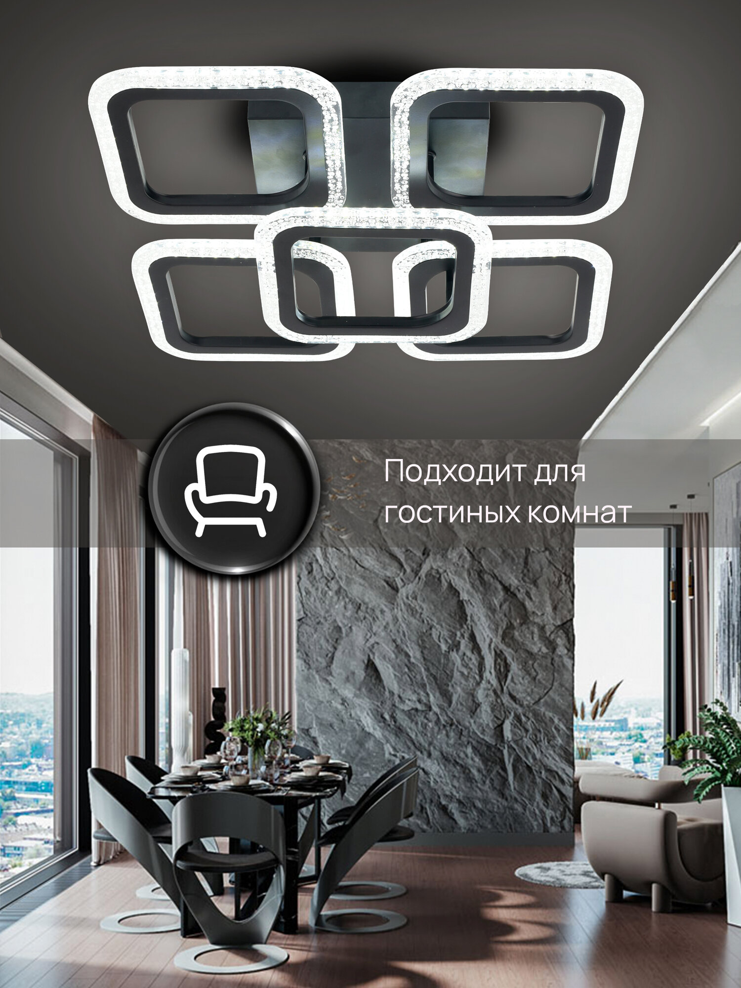 Люстра потолочная светодиодная Семь Огней, черная с пультом, для спальни, зала, кухни