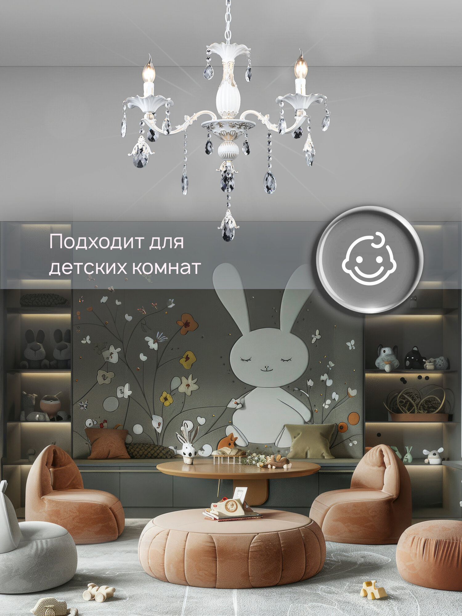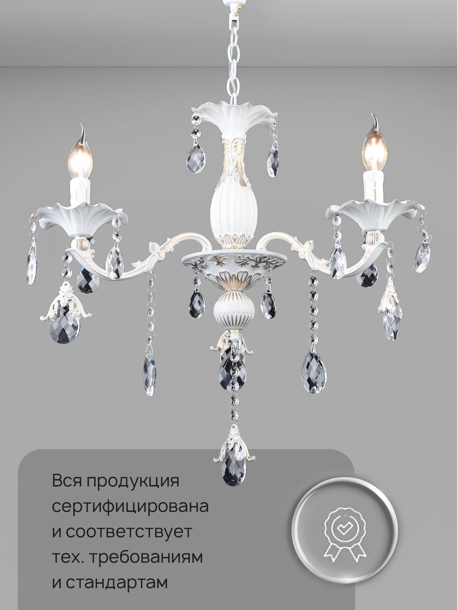 Люстра потолочная подвесная в классическом стиле Семь Огней, белая с золотой патиной на 3 лампочки интересное: