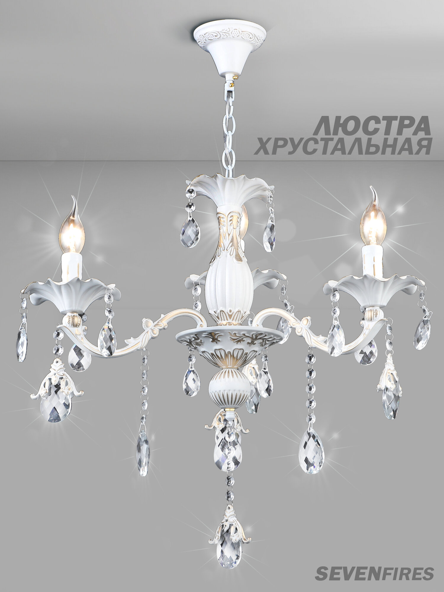 Купить Люстра потолочная подвесная в классическом стиле Семь Огней, белая с золотой патиной на 3 лампочки