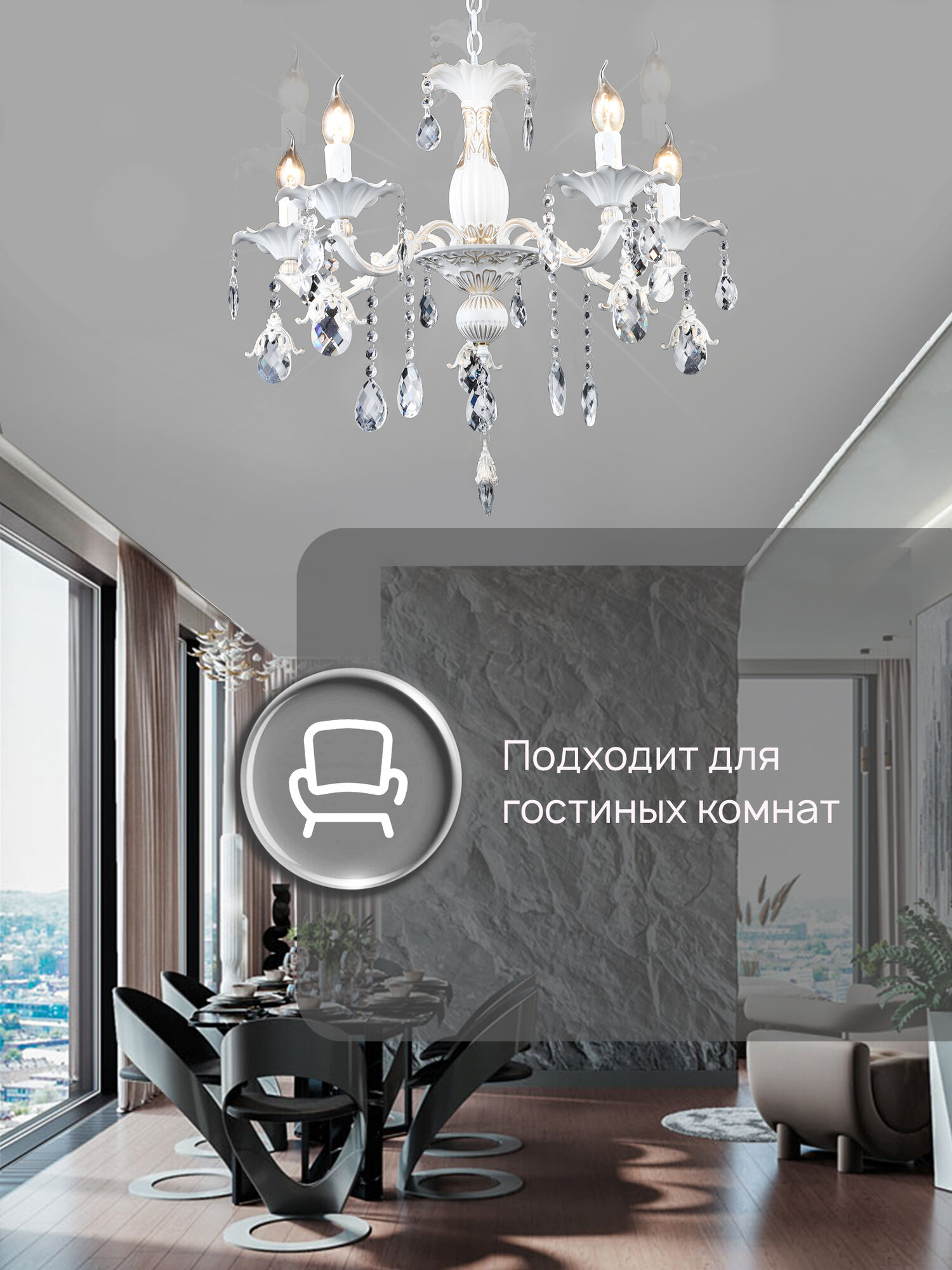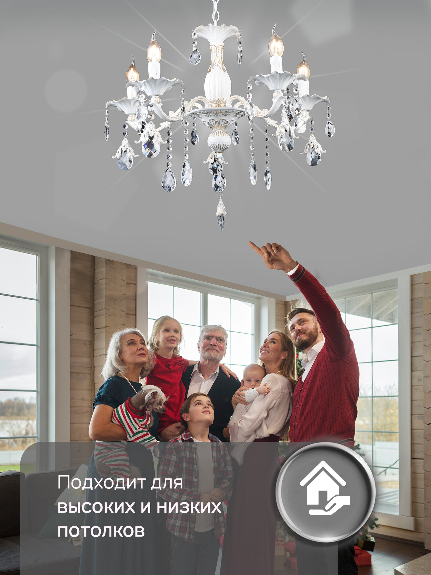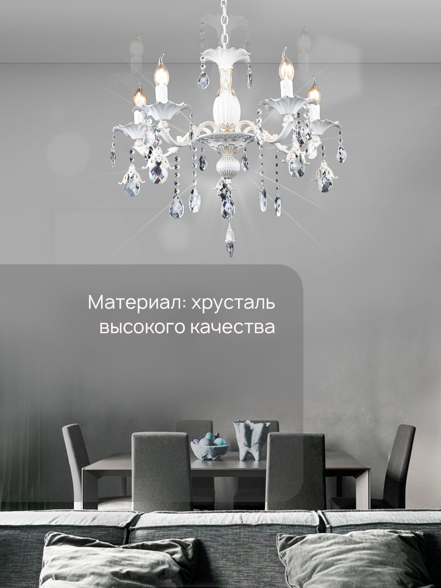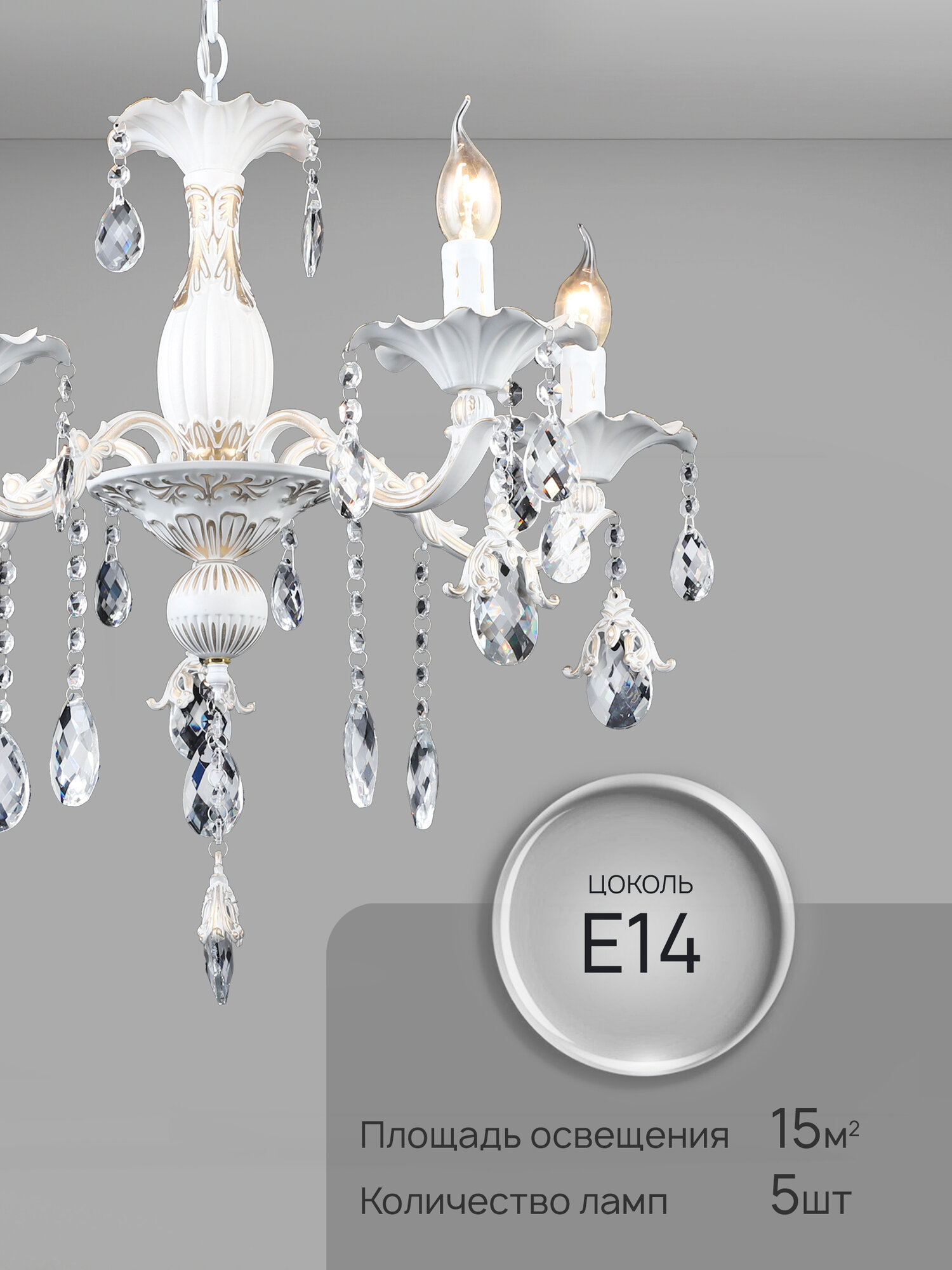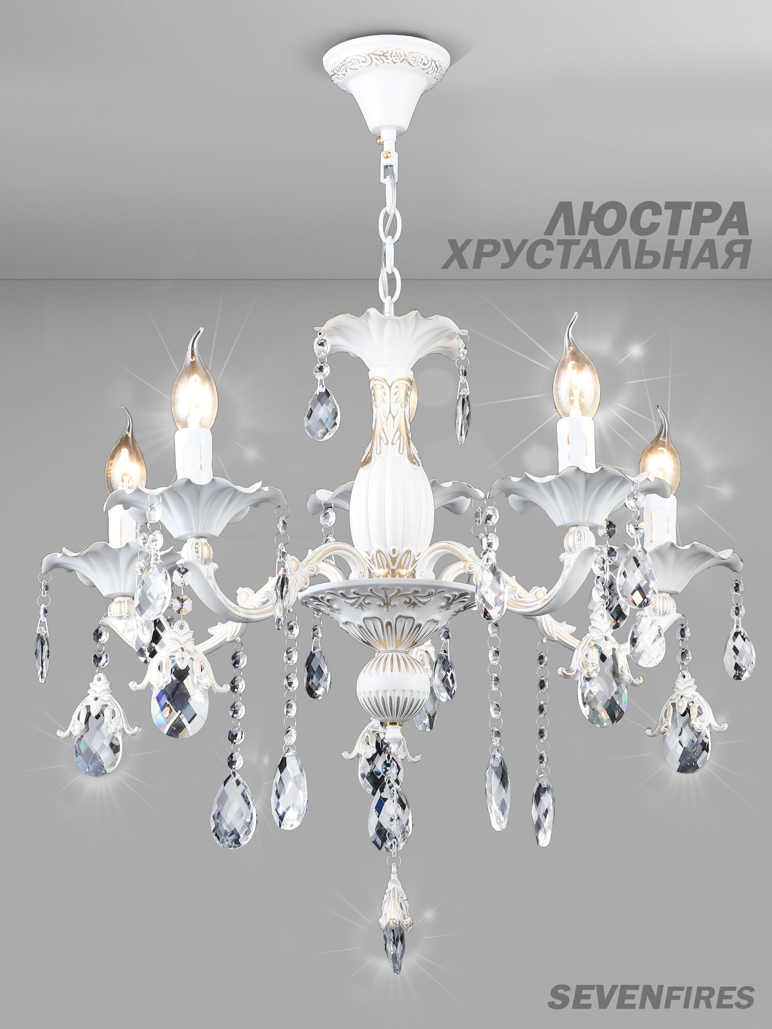 Люстра потолочная подвесная в классическом стиле Семь Огней, белая с золотой патиной на 5 лампочек интересное: