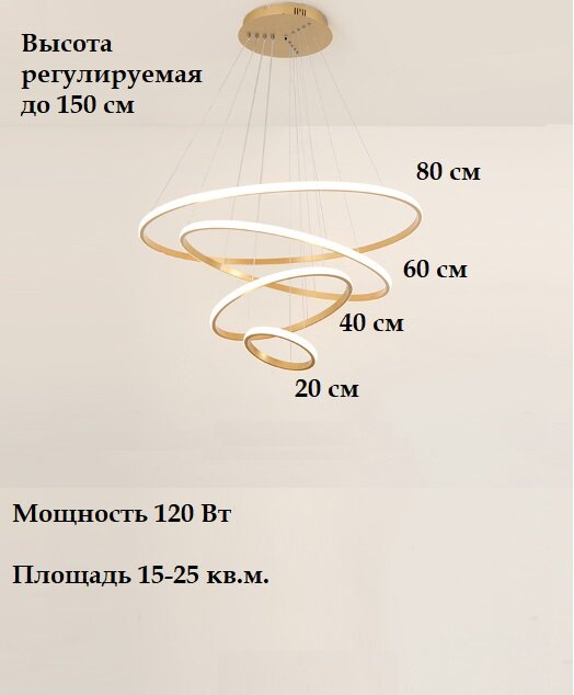 Подвесная светодиодная люстра кольца 20*40*60*80 золотая (V Out)