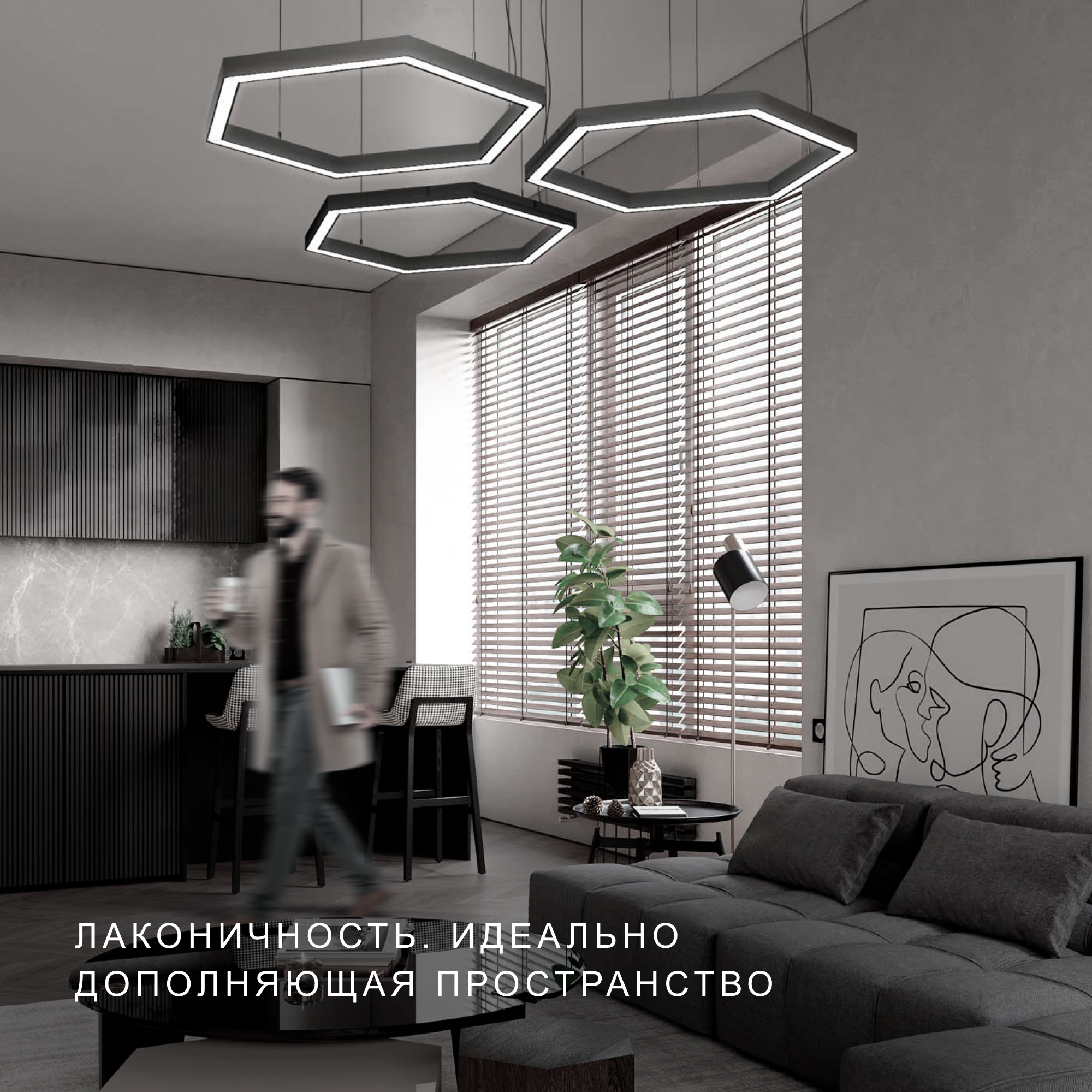 Подвесной светильник "Светолиния", 5000К, 27 Вт, 53*61*5 см, люстра светодиодная, лампа черная интересное: