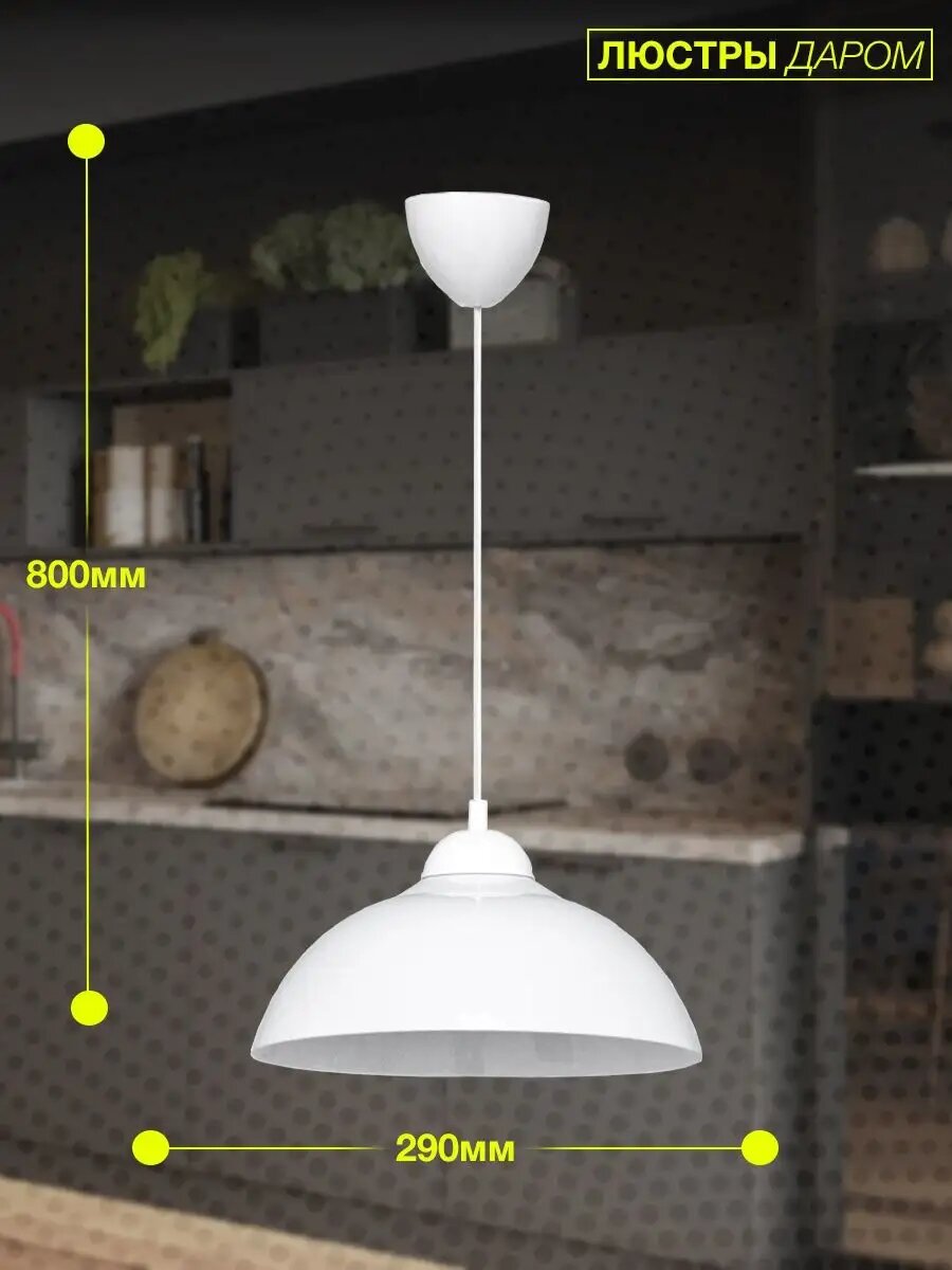 Светильник потолочный подвесной Люстры даром для кухни, металлический плафон, белый цвет