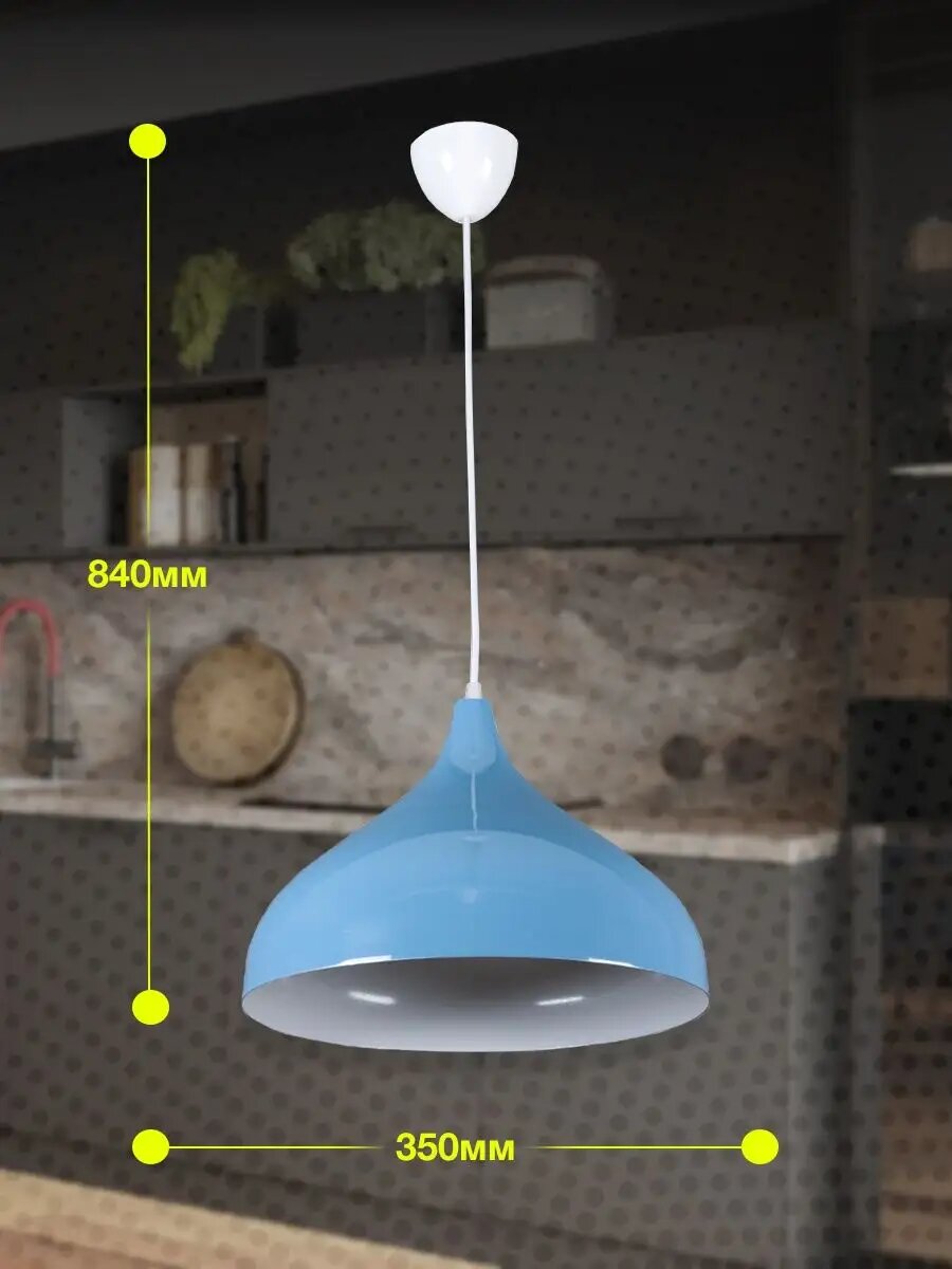 Купить Потолочный подвесной светильник для кухни "Люстры Даром" голубой цвет, металлический плафон