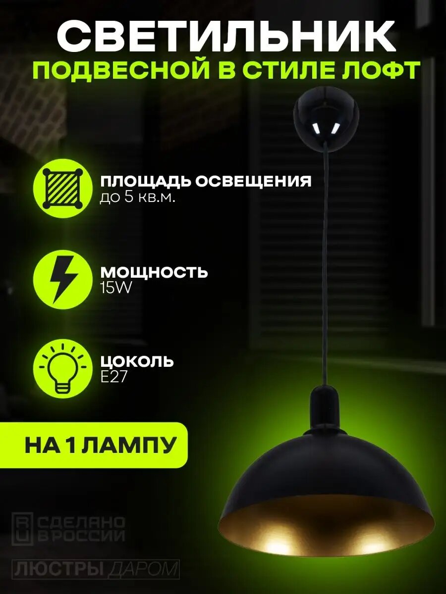 Светильник подвесной черный Люстры Даром в стиле лофт на кухню