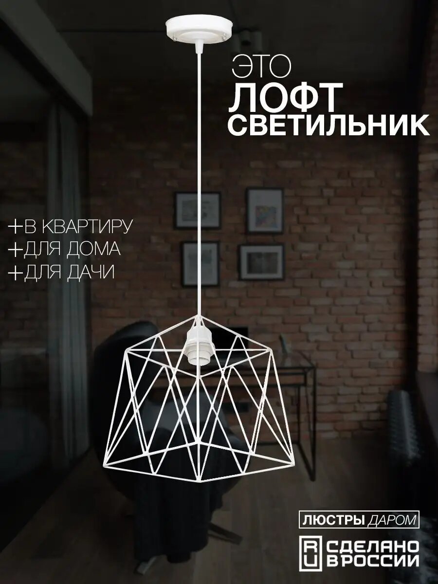 Потолочный подвесной светильник "Люстры даром" в стиле лофт, модерн и хай-тек, белый цвет