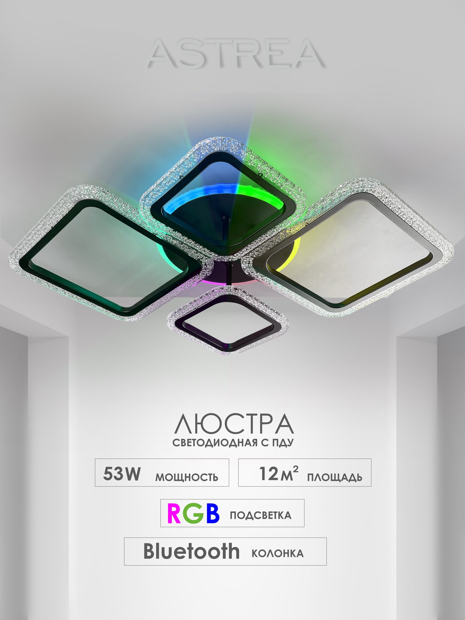 Люстра потолочная с цветной подсветкой ASTREA/люстра светодиодная/ светильник с ПДУ