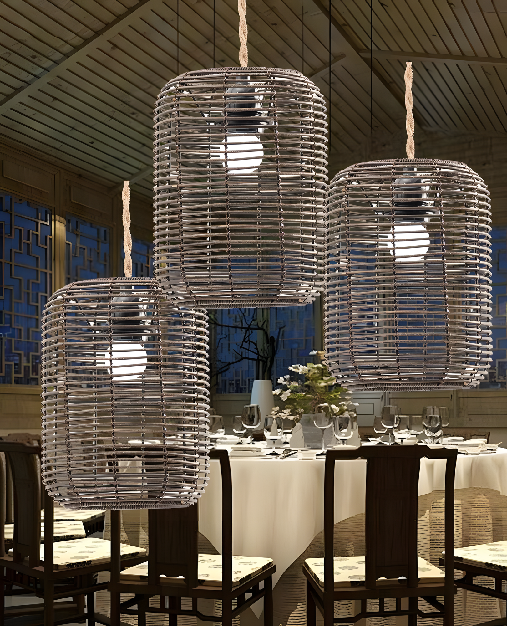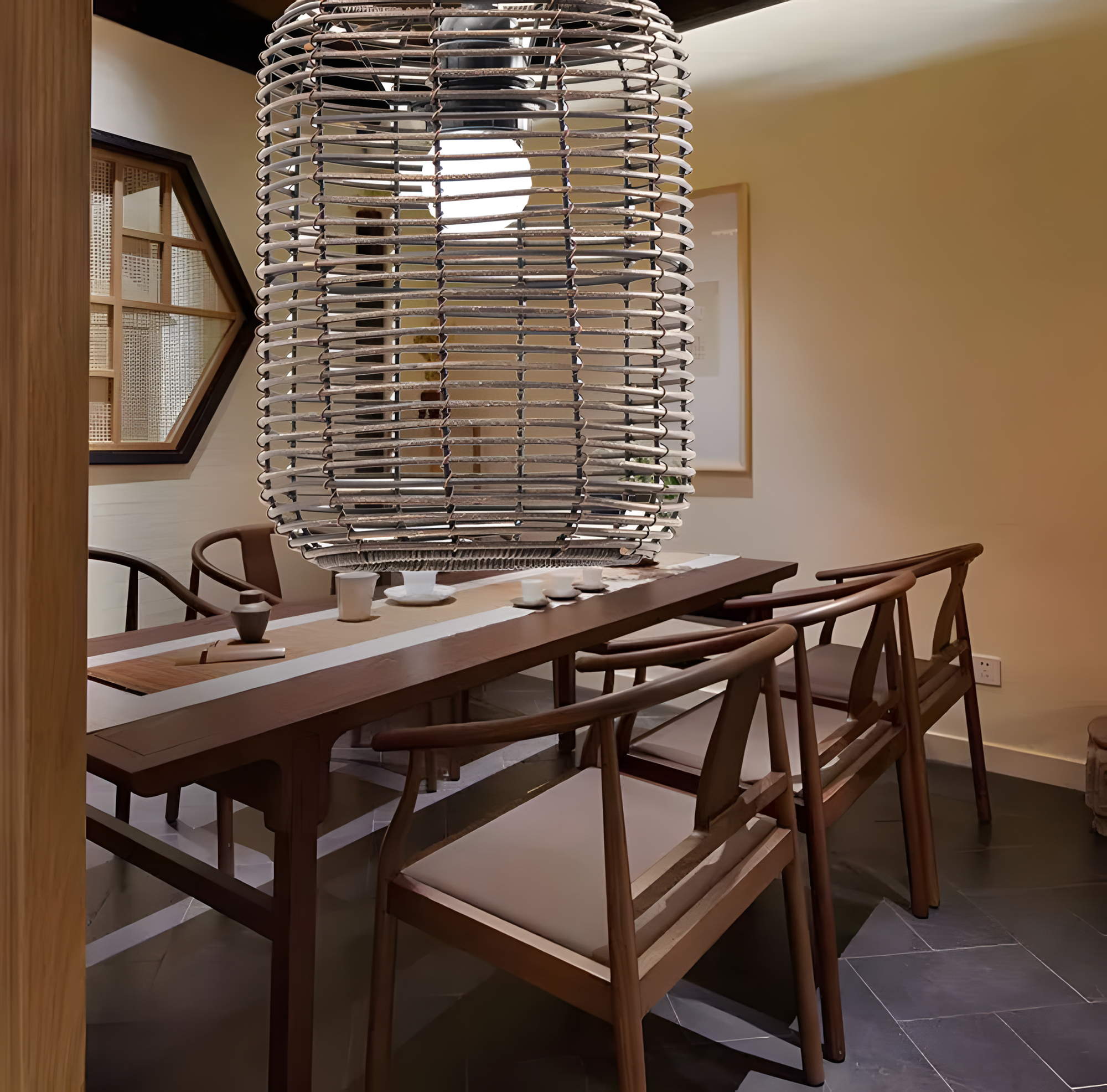 Люстра XH23-411 из искусственного ротанга в стиле ваби-саби, бежевая интересное: