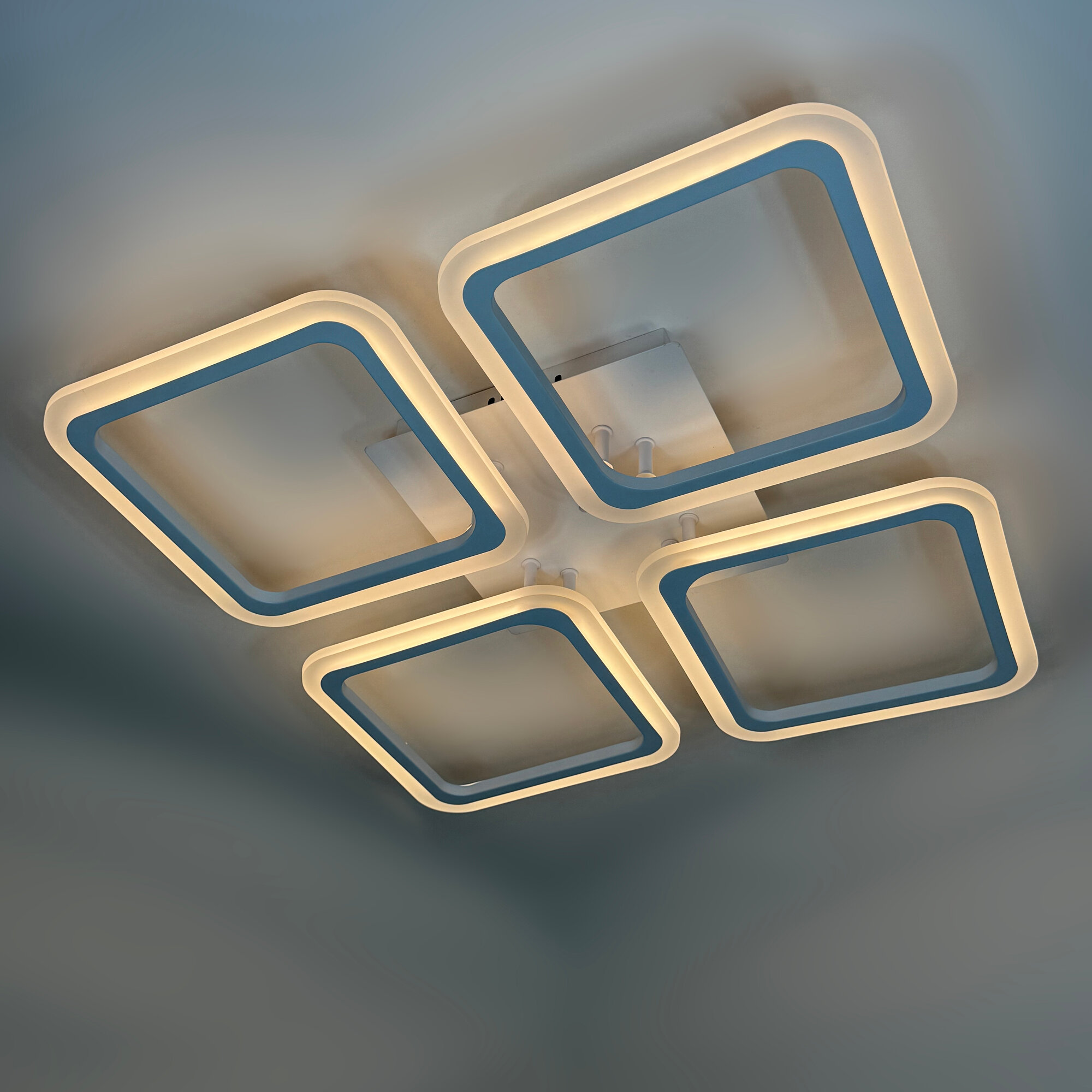 Купить Люстра потолочная светодиодная с пультом 104w, белая, квадраты