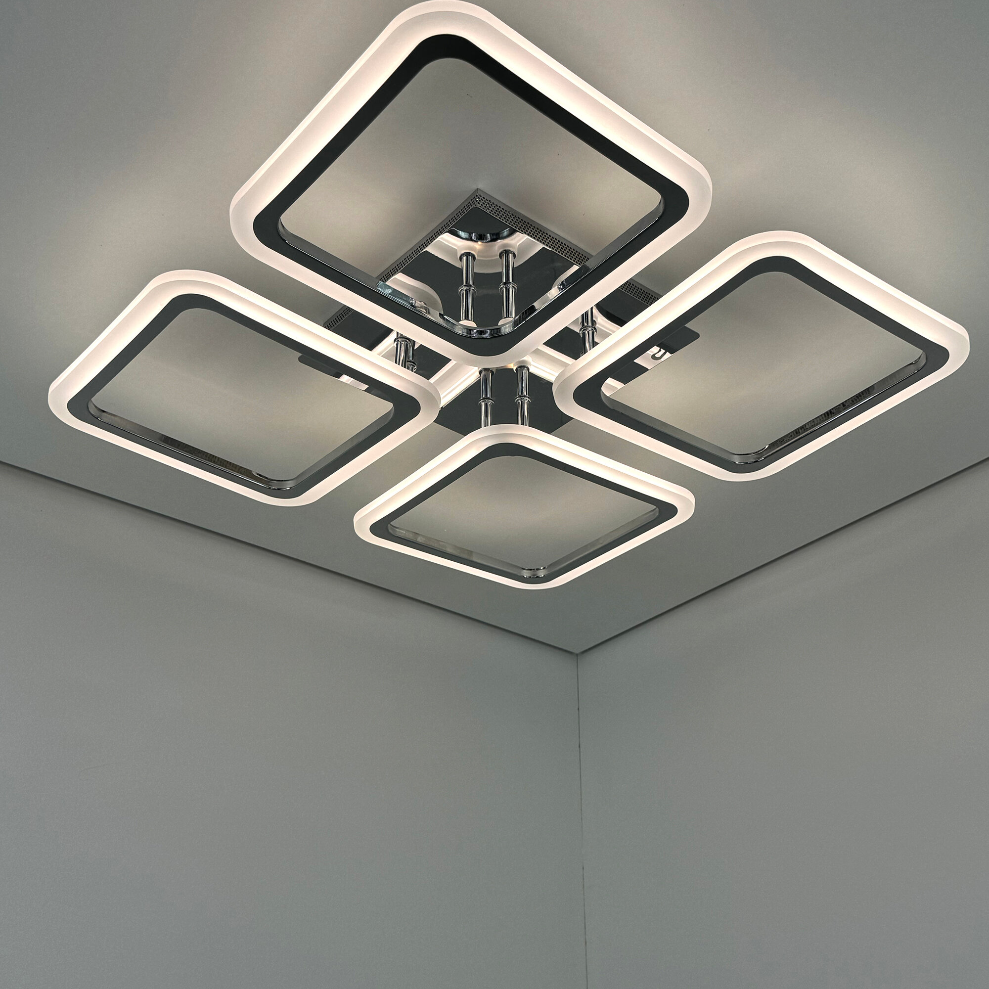 Купить Люстра светодиодная потолочная с пультом 104W 4 квадрата хром