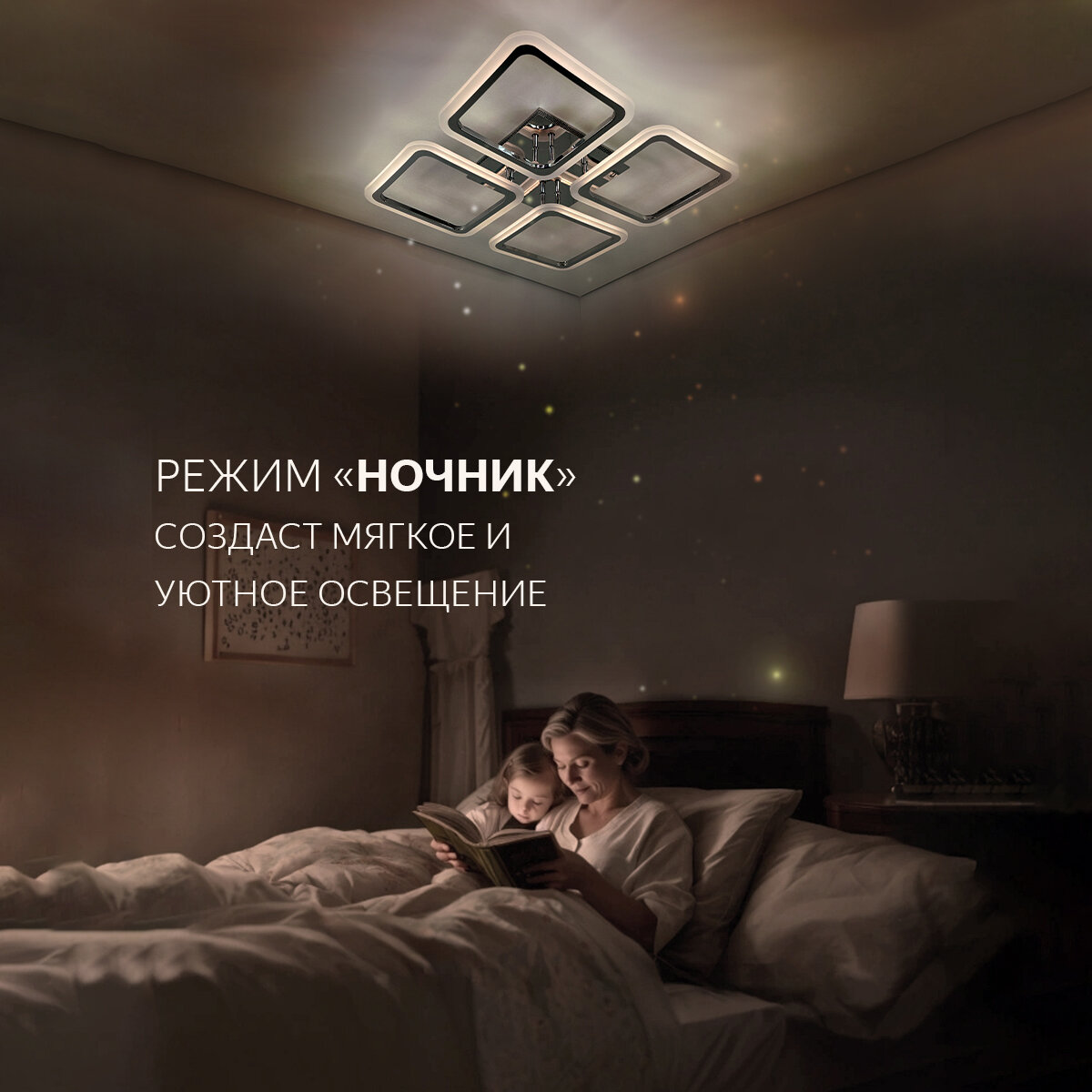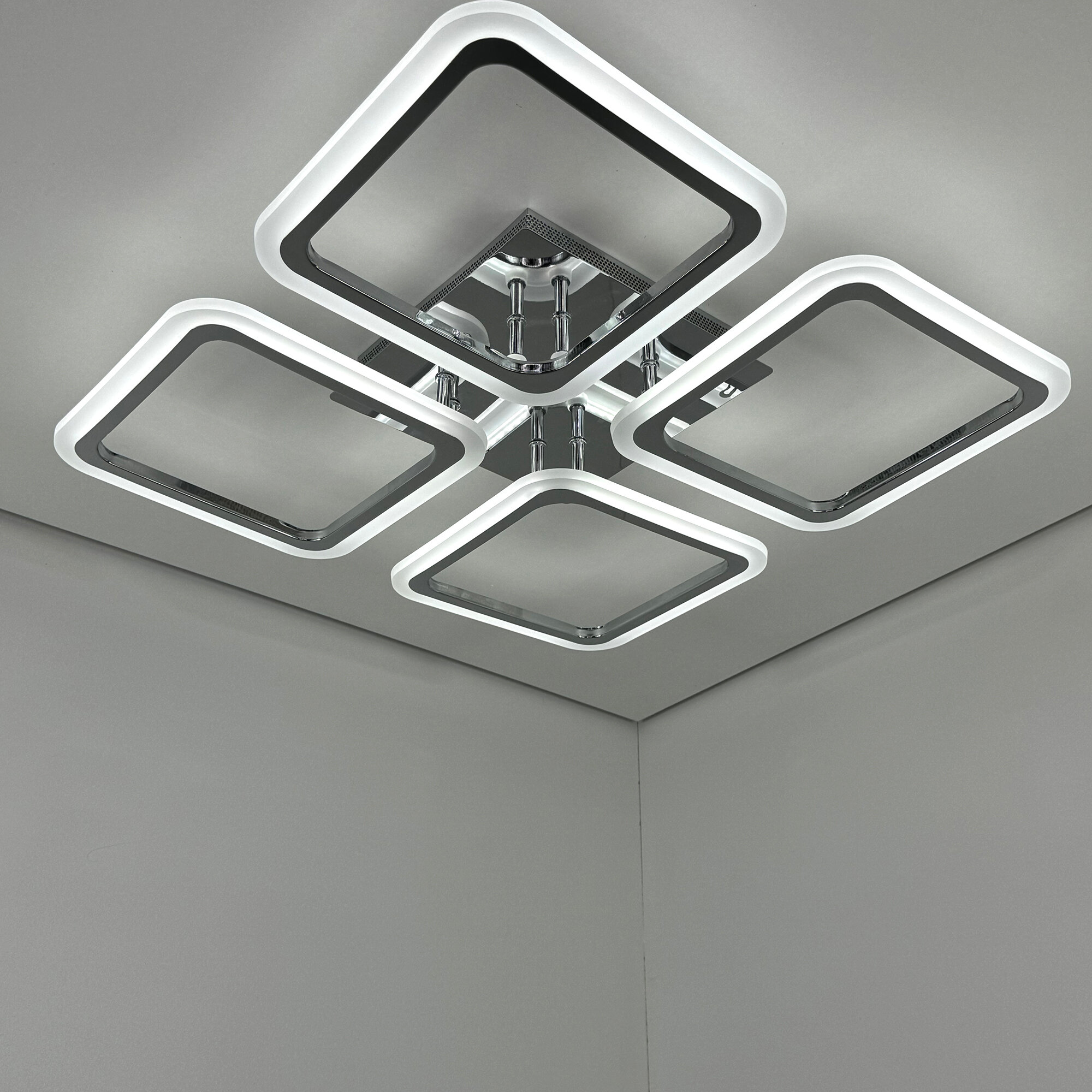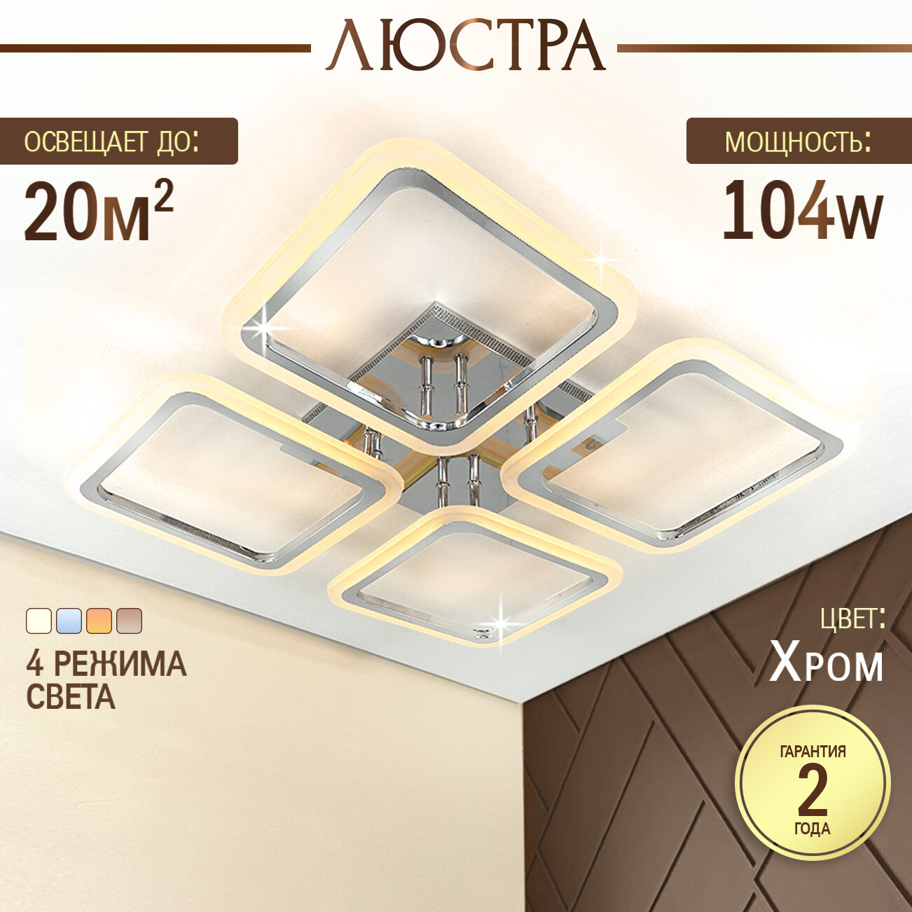 Люстра светодиодная потолочная с пультом 104W 4 квадрата хром интересное: