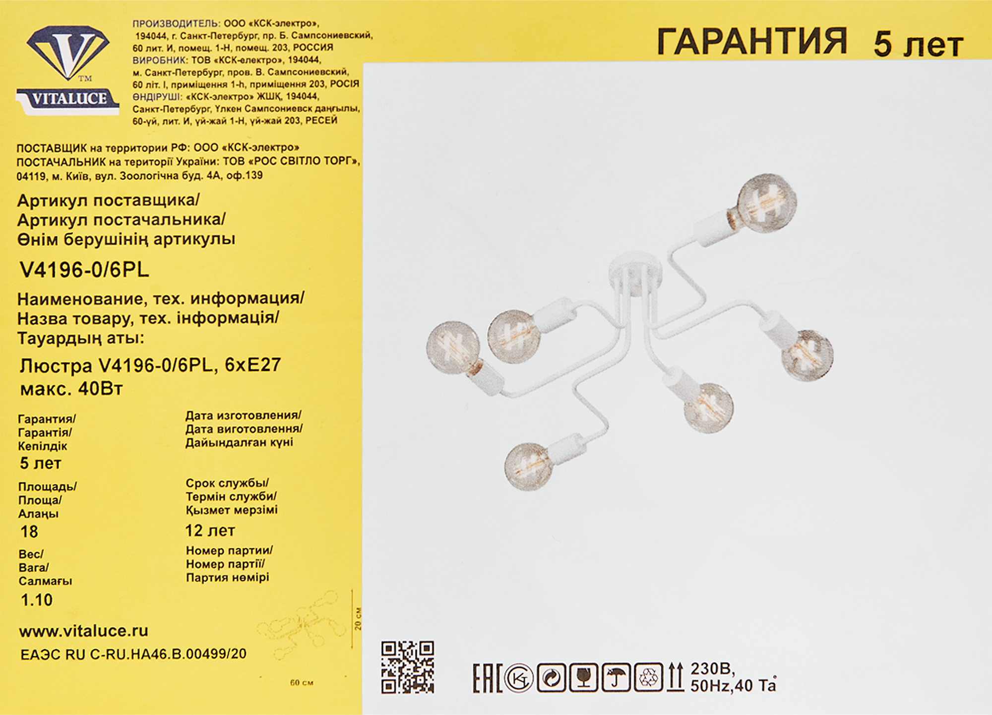 Люстра потолочная Vitaluce Лабиринт 6 ламп 18м² Е27 цвет белый матовый интересное: